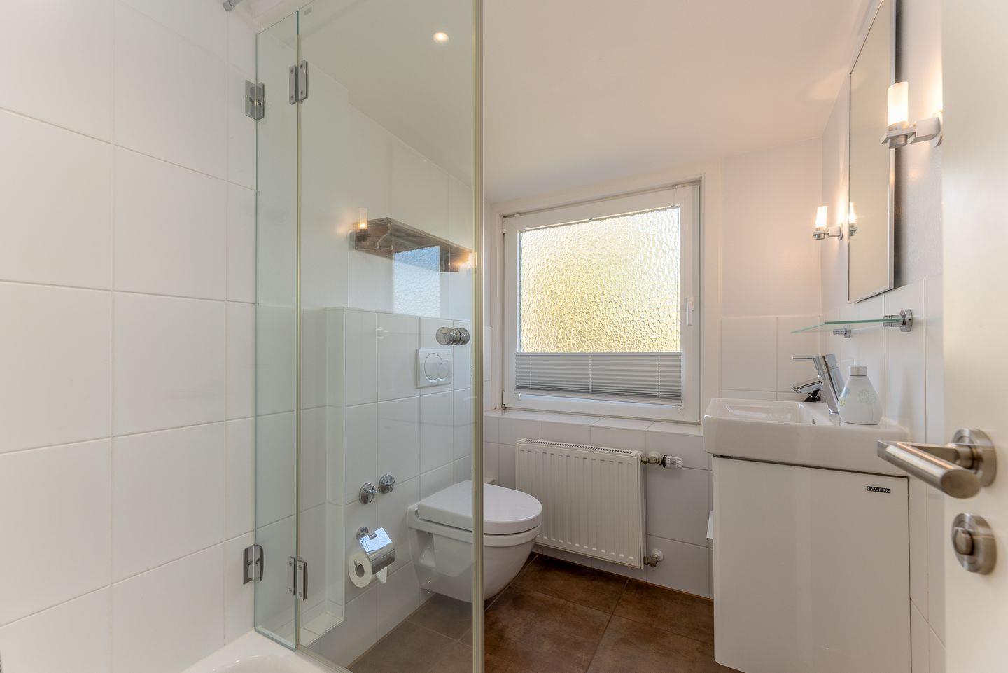 Kuscheliges Doppelzimmer Shelter Island in Westerland mit maritimem Flair und modernem Duschbad, ideal für eine kleine Auszeit auf Sylt.