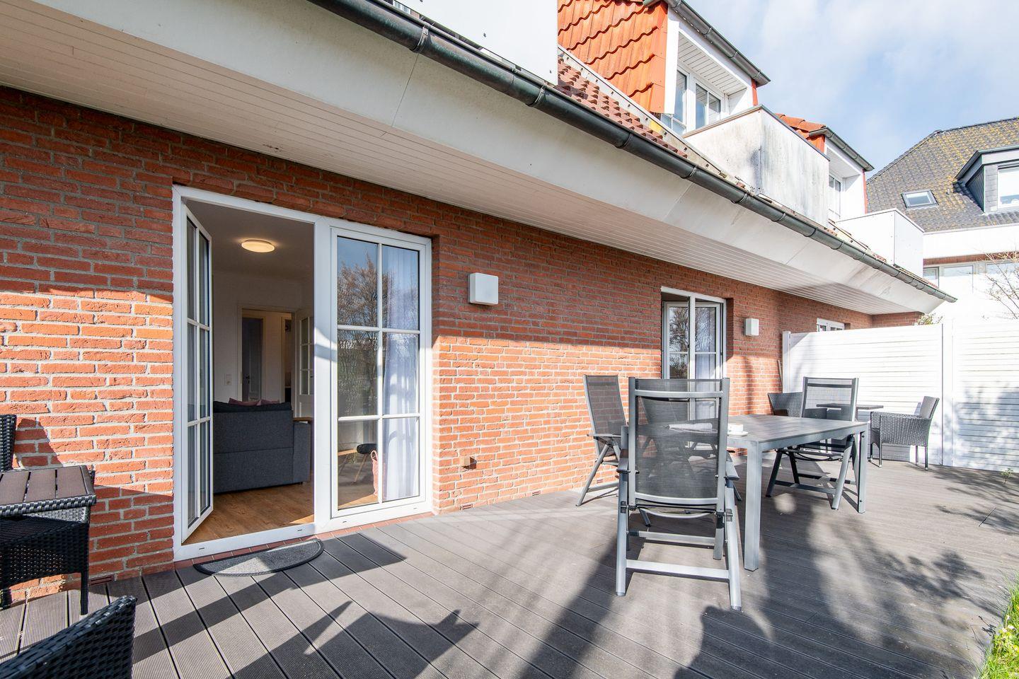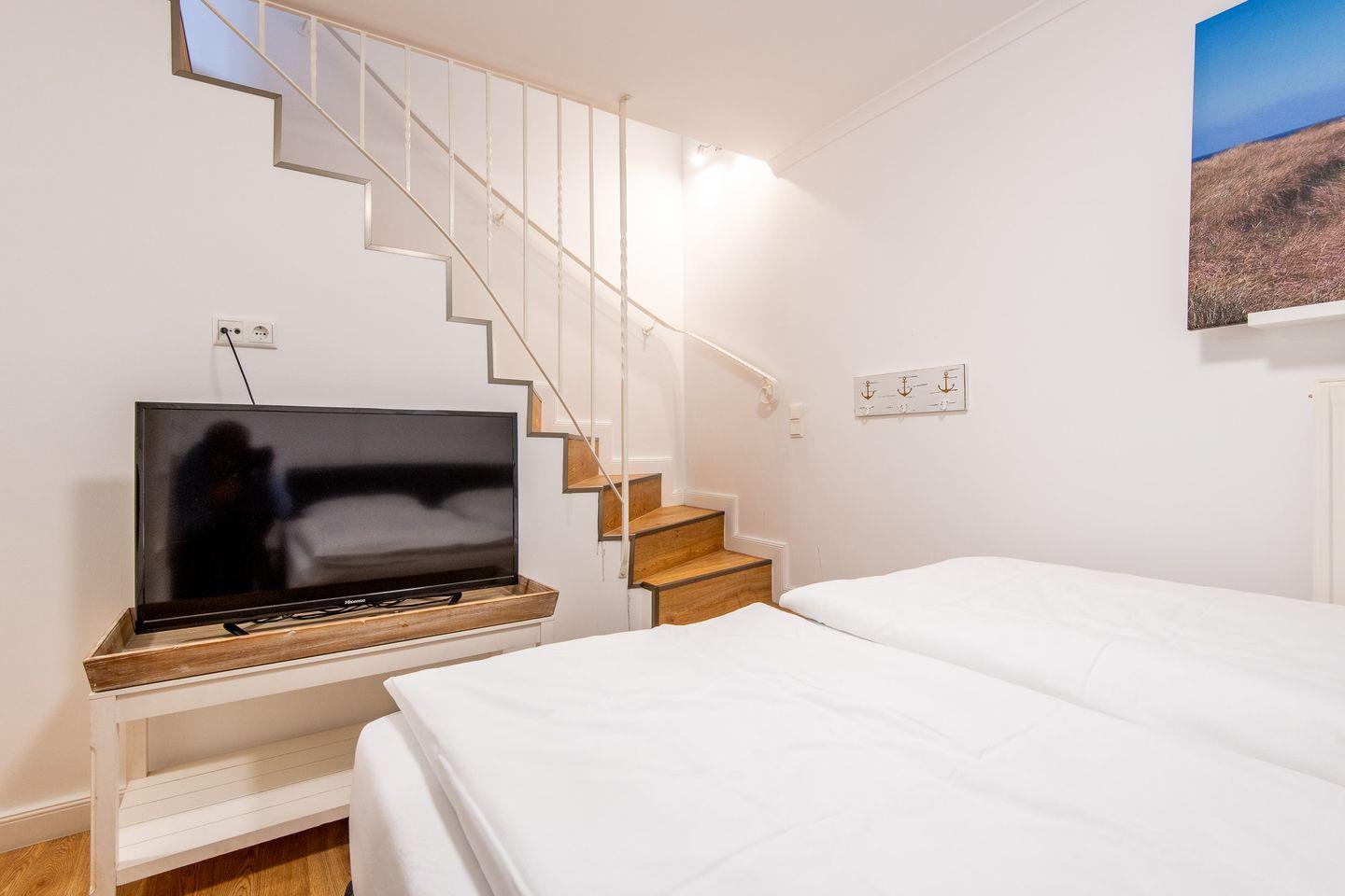 Charmante 3-Zimmer-Ferienwohnung auf zwei Ebenen in Westerland, nur 300 m vom Strand, mit Terrasse und WLAN.