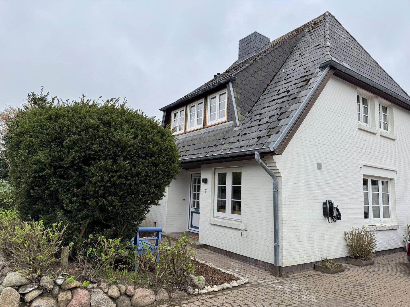 Familienfreundliches ca. 125 m² großes Ferienhaus in ruhiger Lage von Westerland für bis zu 6 Personen samt Terrasse und abgeschlossenem Garten sowie zugehörigem PKW-Stellplatz (inkl. E-Ladestation), kostenfreies WLAN und Strandkorb (in der Saison).