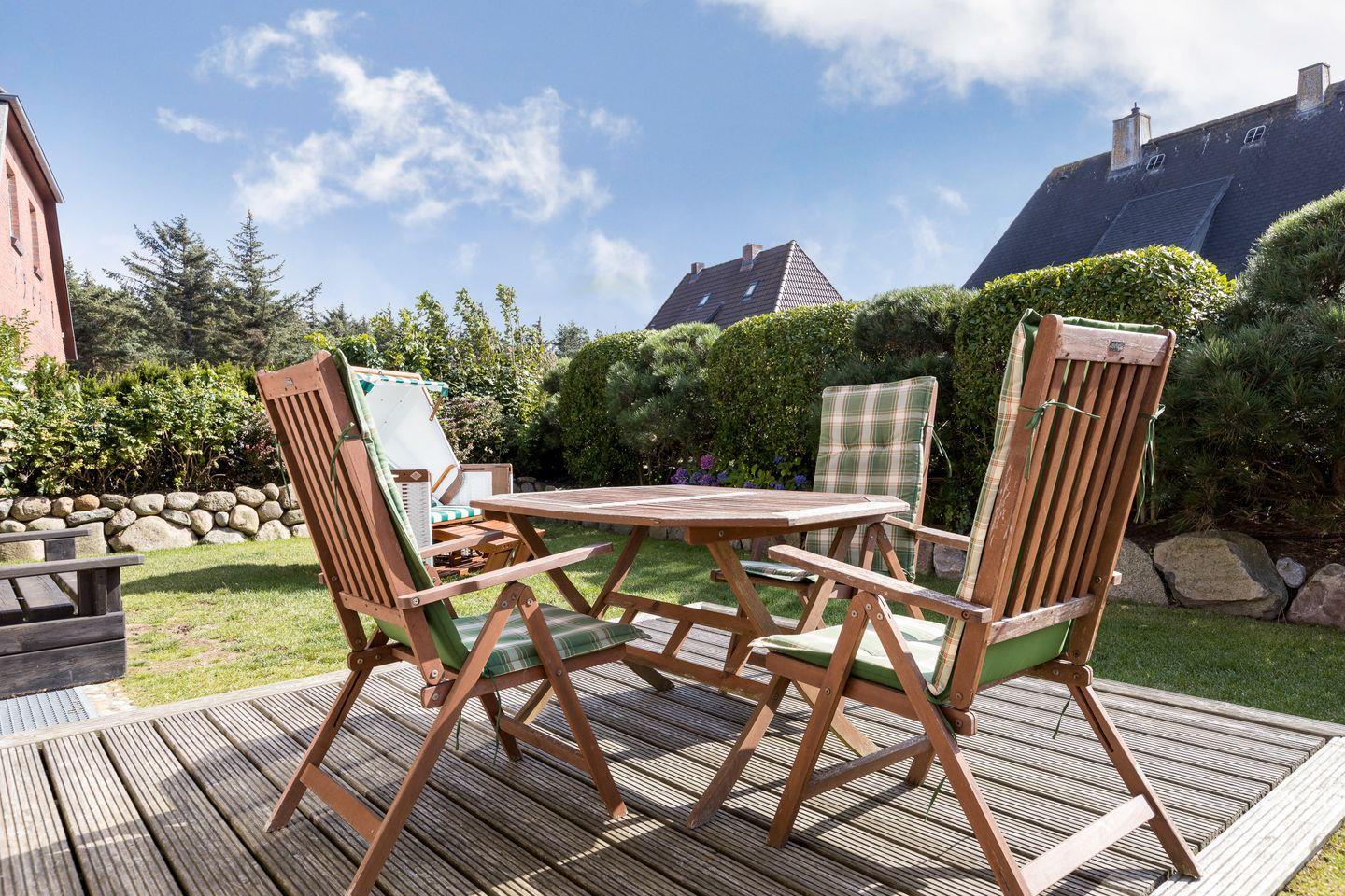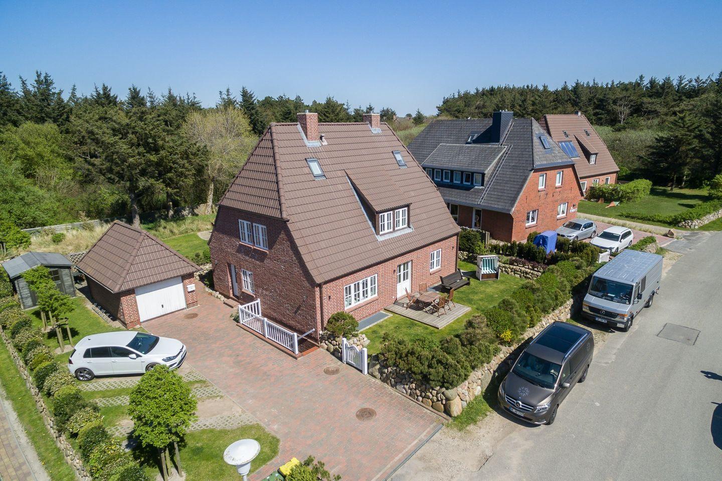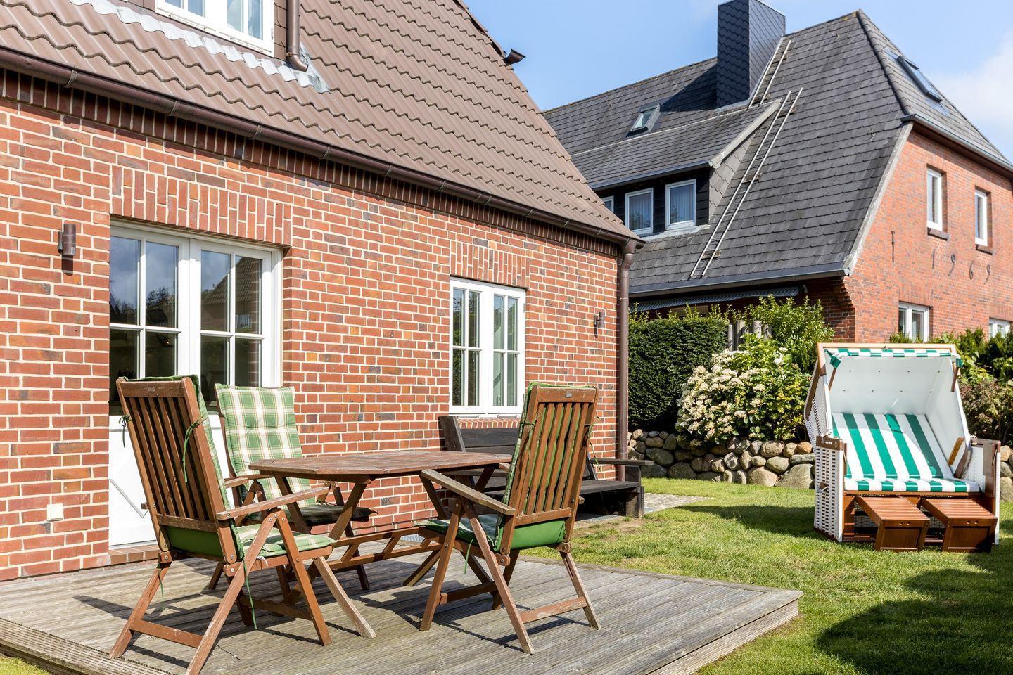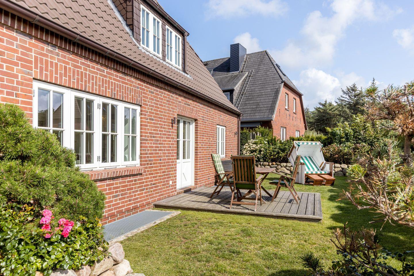 Familienfreundliche ca. 100 m² große Ferienwohnung für bis zu 4 Personen mit schönem Garten in einem wieder-errichteten traditionellen Offiziershaus am Waldrand in direkter Strandlage im Norden Westerlands. Inklusive WLAN, zugehörigem PKW-Stellplatz sowie Strandkorb (in der Saison).