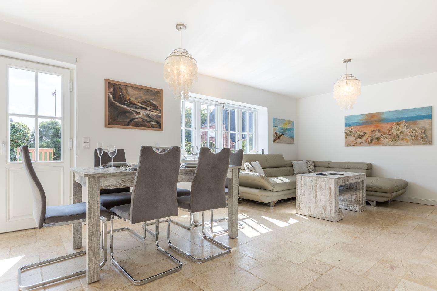 Diese familienfreundliche ca. 100 m² große Ferienwohnung für bis zu 4 Personen befindet sich in direkter Strandlage. "White Pearl EG" bietet Ihnen eine luxuriöse Ausstattung und absoluten Komfort. Die offene, moderne Küche samt Geschirrspüler ist voll ausgestattet und lädt zum gemeinsamen Kochen ein. Genießen Sie entspannte Urlaubstage im angrenzenden Wohn- und Essbereich. Die Ferienwohnung verfügt über zwei Doppelschlafzimmer sowie ein großzügiges Badezimmer samt Dusche und Badewanne. Alle Wohnräume sind durch Flat TVs ausgestattet. Nutzen Sie die schöne Terrasse und den angrenzenden Garten mit Gartenmöbeln und einem Strandkorb (in der Saison). Absolute Entspannung bietet Ihnen der gemeinschaftliche Wellnessbereich (2 Parteien), ausgestattet mit einer großzügigen Sauna, Saunadusche und TV. Das Ferienhaus verfügt über WLAN, eine zugehörigen PKW-Stellplatz vor dem Haus, eine Waschmaschine sowie einen Wäschetrockner. Haustiere sind erlaubt. Genießen Sie tagsüber den schönen Ort Westerland sowie die Insel Sylt und lassen Sie den Abend mit der Familie gemütlich am Kamin ausklingen.