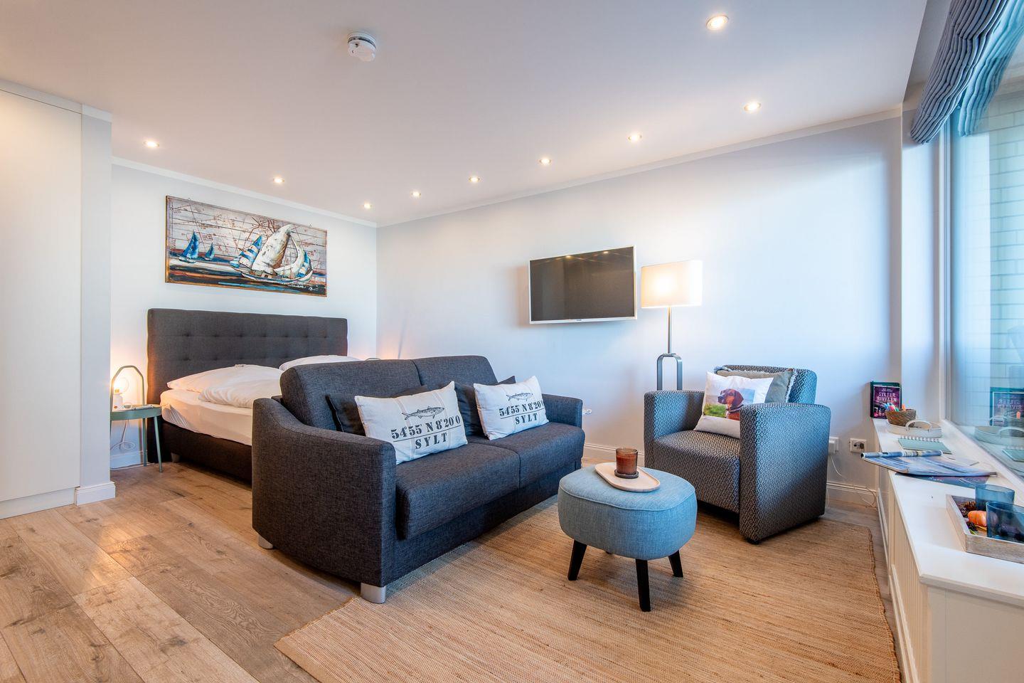 Diese moderne 1-Zimmer-Wohnung erstreckt sich über ca. 38 qm und bietet alles, was Sie für einen erholsamen Urlaub auf Sylt benötigen. Die Wohnung liegt im lebhaften Zentrum von Westerland in der Friedrichstraße, nur wenige Gehminuten vom zentralen Weststrand entfernt. Trotz der zentralen Lage bietet das Appartement Nr. 9 „Capper“ Ruhe und Komfort in der 1. Etage mit Ausblick auf Westerlands „Neue Mitte“.