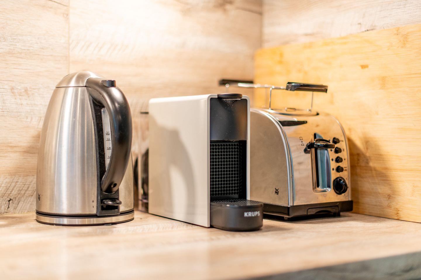 Die Küche ist modern eingerichtet und verfügt über eine gemütliche Sitzecke. Mit einer voll ausgestatteten Einbauküche, inklusive Geschirrspüler, bietet sie allen Komfort, um Ihre Mahlzeiten zuzubereiten.