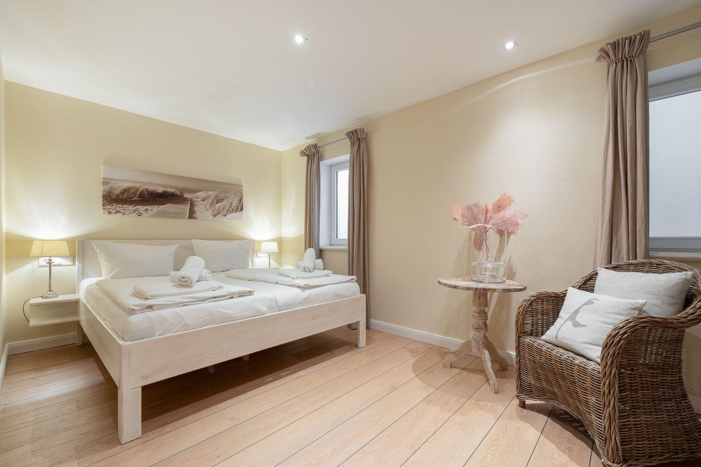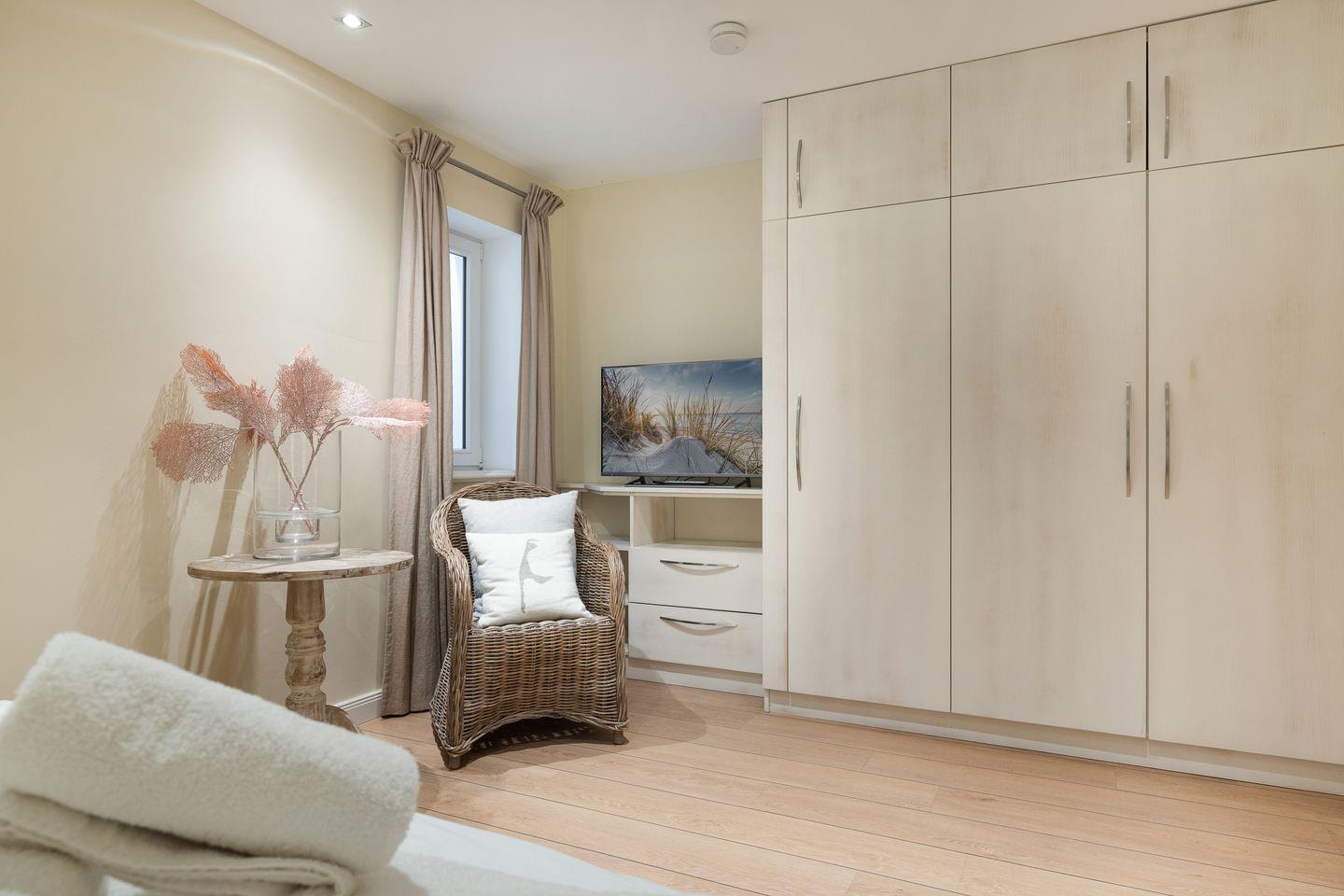Nur wenige Gehminuten trennen Sie vom weiten Sandstrand und der Nordsee – perfekt für ausgedehnte Spaziergänge oder entspannte Stunden am Wasser. Dank der zentralen, aber ruhigen Lage in zweiter Baureihe genießen Sie absolute Privatsphäre und sind dennoch fußläufig in Westerlands Zentrum, wo erstklassige Restaurants, Cafés und Einkaufsmöglichkeiten auf Sie warten.