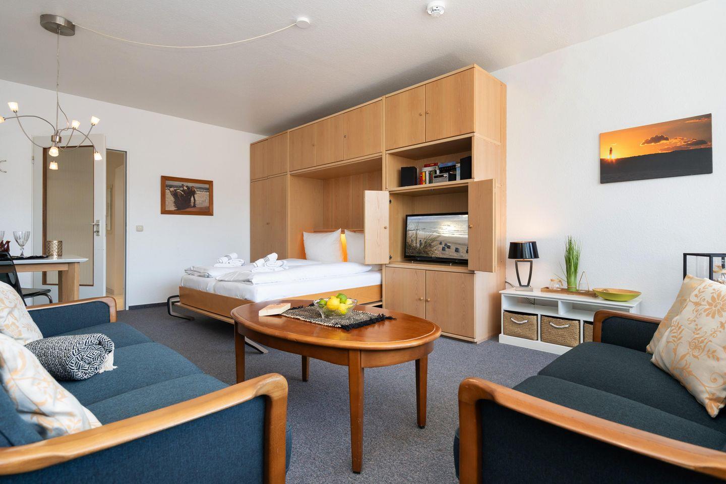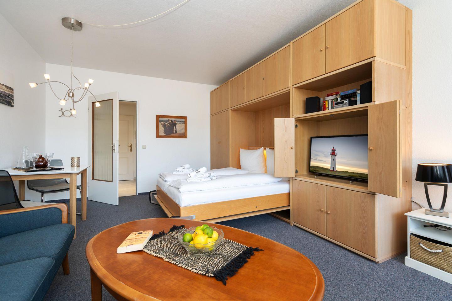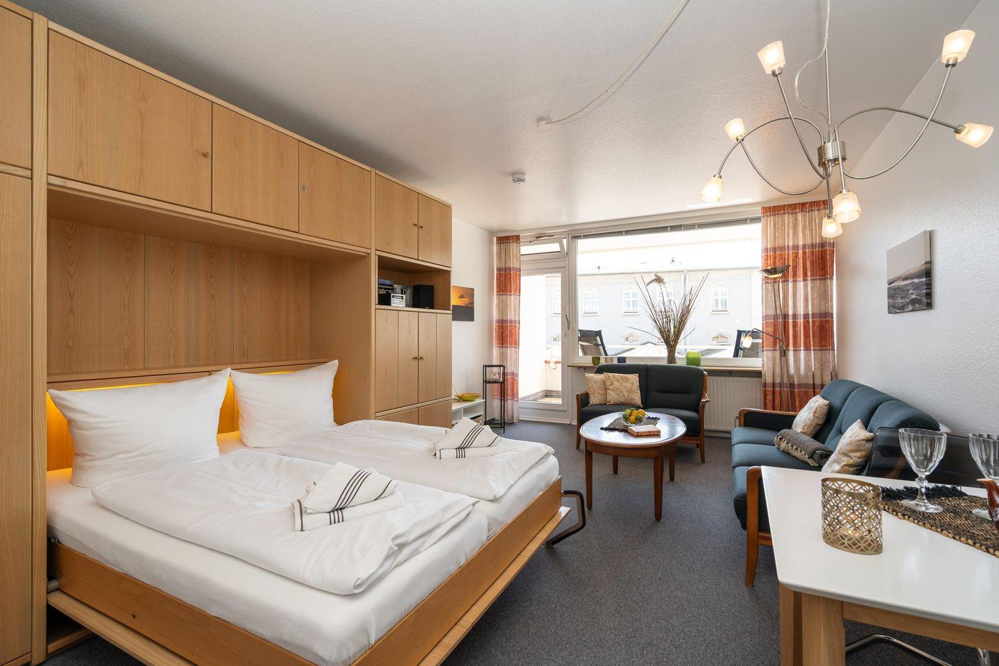 Gemütliche 1-Zimmer-Ferienwohnung mit Südbalkon, WLAN und Tiefgaragenstellplatz, strandnah im Herzen von Westerland.