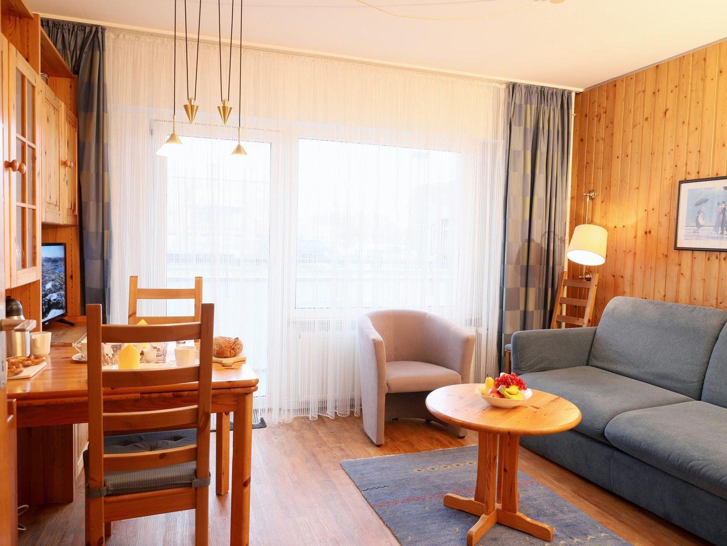 Gemütliches 2-Zimmer-Appartement mit Balkon, Schwimmbad und Sauna in Westerland, ideal für erholsame Ferien zu viert.