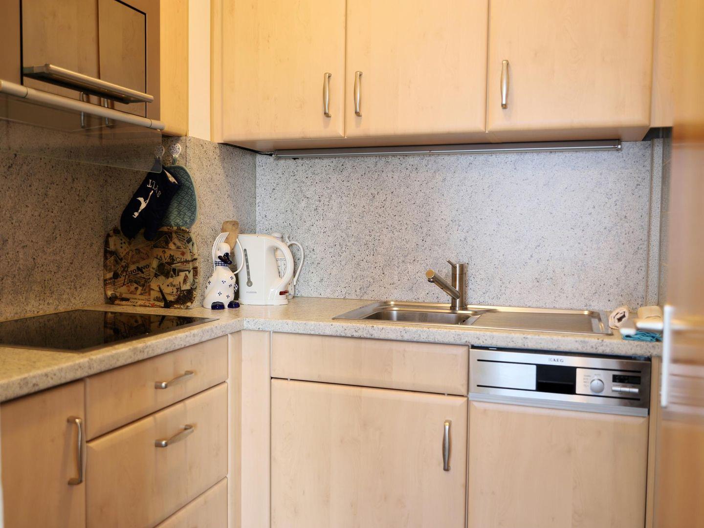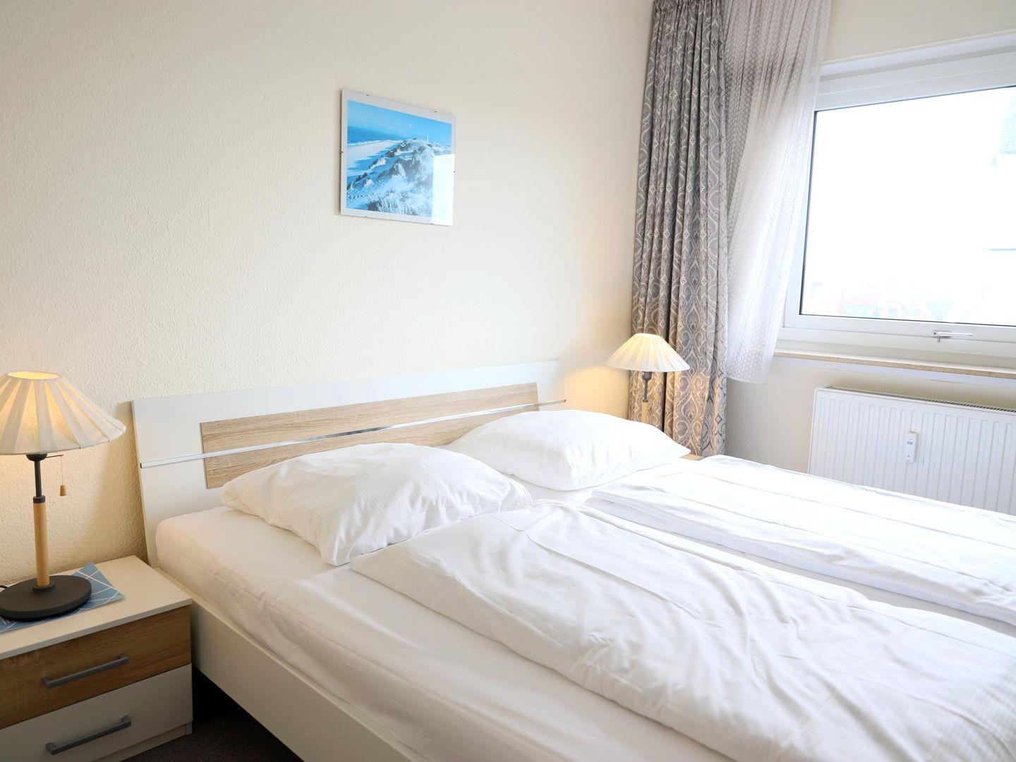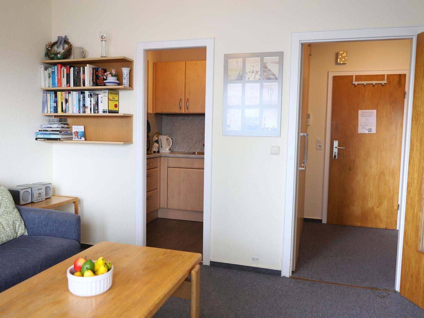 Das 2-Zimmer-Appartement in Westerland (ca. 40 m²) für bis zu 4 Personen bietet ein Schlafzimmer mit Doppelbett, ein Wohnzimmer mit Schlafsofa, eine separate Küche und ein Wannenbad. Haustiere willkommen. Schwimmbad, Sauna und mehr im Haus verfügbar.