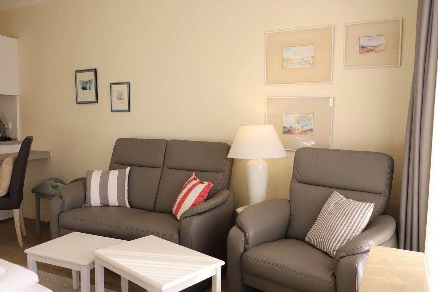Das moderne 1-Zimmer-Appartement im Herzen von Westerland bietet alles für einen komfortablen Aufenthalt. Auf etwa 30 m² finden Sie ein gemütliches Wohnzimmer mit Sitzecke, Kabel-TV und Radio mit CD-Player. Das Doppelschrankbett (180 x 200 cm) sorgt für erholsamen Schlaf, während die integrierte Küchenzeile mit Glaskeramik-Kochfeld, Dunstabzugshaube, Kühlschrank und Esstresen für Selbstversorger bestens ausgestattet ist. Das kleine Badezimmer ist mit einer Dusche und einem WC versehen. Der Süd-Balkon lädt zum Entspannen ein. Ein kostenfreier Stellplatz direkt am Haus und ein Fahrradständer (mit Hinweis auf keine garantierte Stellplatzverfügbarkeit) bieten zusätzlichen Komfort. Diese Nichtraucherwohnung ist ideal für Paare oder Alleinreisende. Haustiere sind nicht erlaubt.