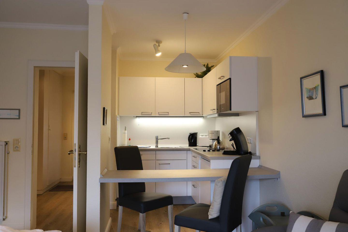 Modernes 1-Zimmer-Appartement in Westerland mit Balkon, Parkplatz und gut ausgestatteter Küchenzeile.