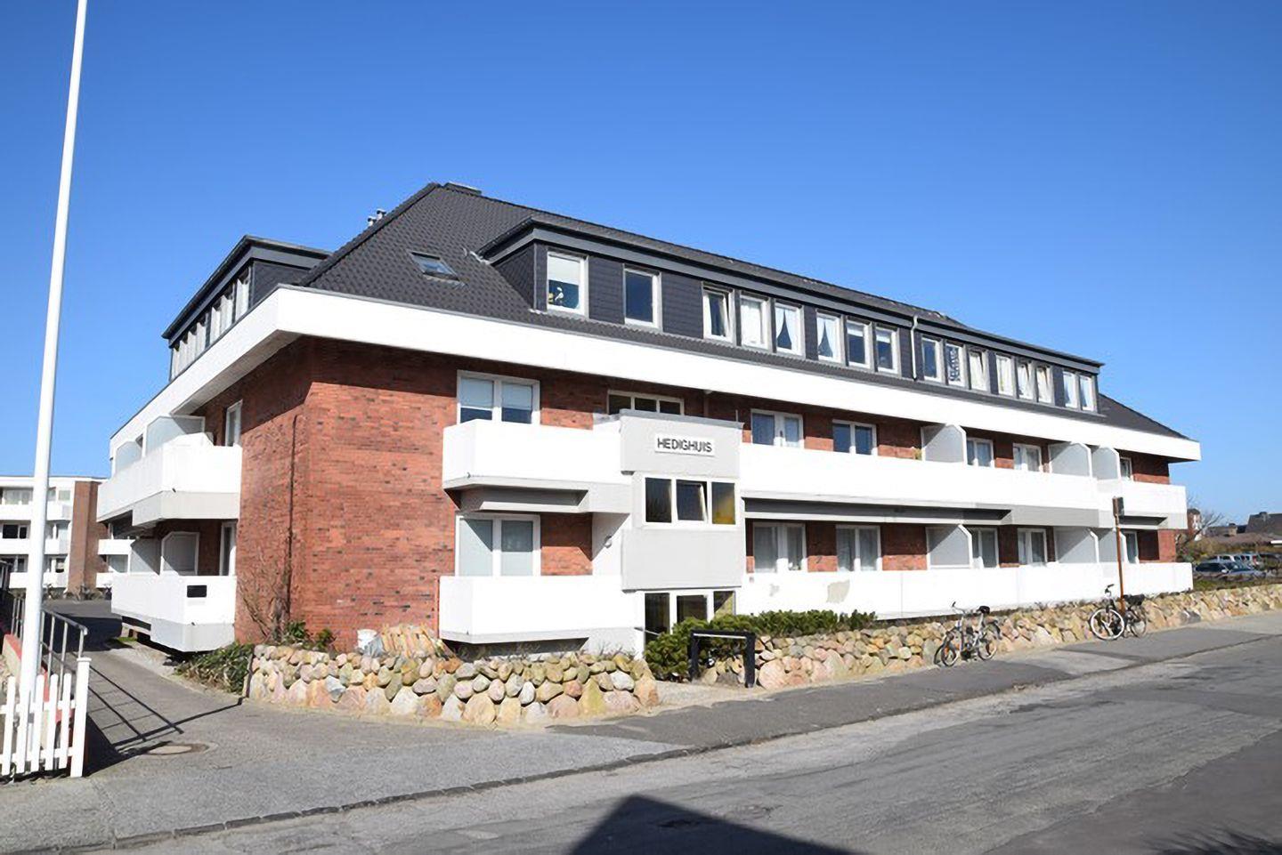 Die modern eingerichtete 2-Zimmer-Wohnung „Hedighuis“ in der Kampstraße 11 bietet auf 53 m² Platz für 2 Personen. Das Schlafzimmer verfügt über ein komfortables Doppelbett (180 x 200 cm). Der helle Wohnbereich lädt zum Entspannen ein, während der Ost-Balkon mit Gartentisch und Stühlen ideal für ein gemütliches Frühstück ist. Der Strand ist in wenigen Gehminuten erreichbar, und auch die Westerländer Innenstadt ist nur einen kurzen Spaziergang entfernt. Radwege führen in alle Richtungen, und ein Fahrradverleih sowie eine Bäckerei befinden sich in der Nähe. Zusätzlich stehen eine Münzwaschmaschine und ein Trockner im Keller zur Verfügung. Ein kostenfreier Parkplatz ist inklusive. Die Wohnung ist eine Nichtraucherwohnung, und Haustiere sind nicht gestattet. Perfekt für einen entspannten Sylt-Urlaub!