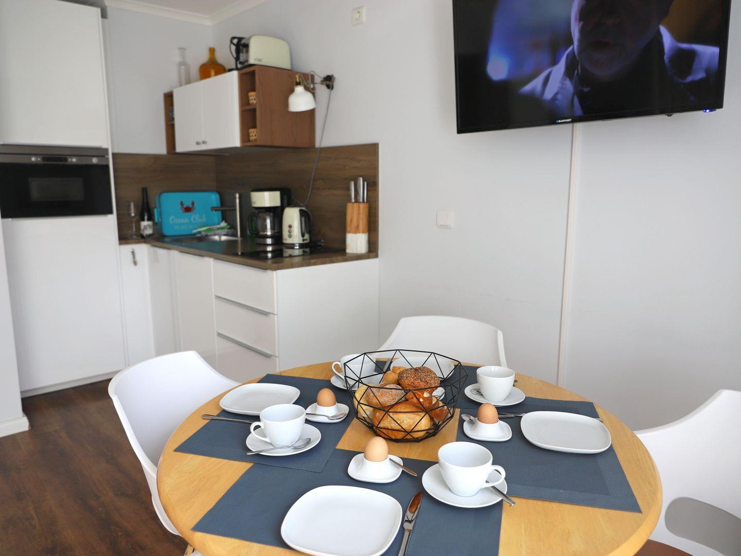Moderne 3-Zimmerwohnung in Westerland mit Süd-Terrasse, Strandkorb und kostenfreiem Parkplatz für erholsame Urlaubstage.