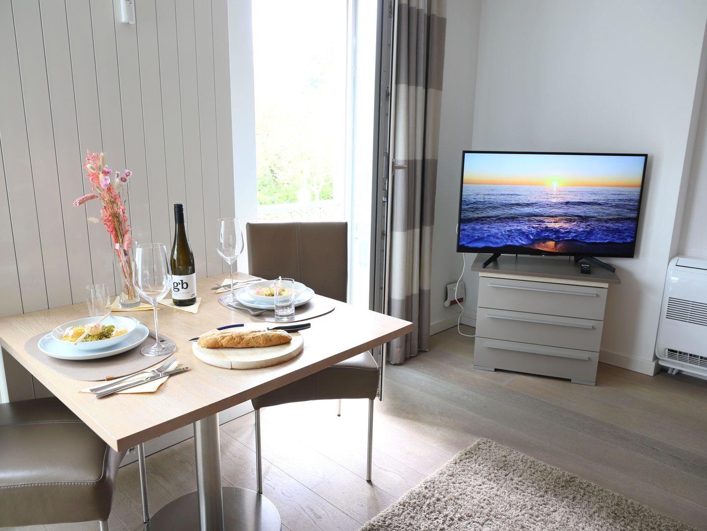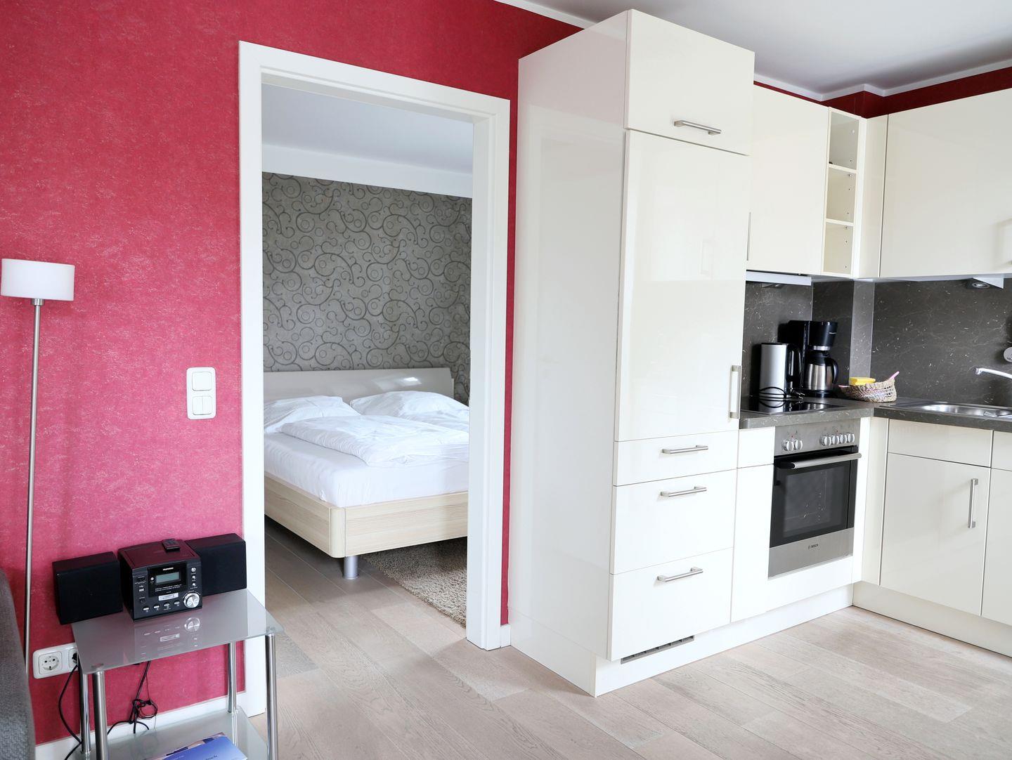 In der Viktoriaresidenz erwartet Sie eine moderne, lichtdurchflutete 2-Zimmer-Wohnung mit Klimaanlage auf ca. 50 m². Die Wohnung bietet Platz für bis zu 3 Personen und befindet sich in der 1. Etage eines Neubaus. Der Wohnbereich verfügt über ein Schlafsofa (165 x 190 cm), eine offene, voll ausgestattete Küche und einen Essbereich. Im Schlafzimmer finden Sie ein komfortables Doppelbett (180 x 200 cm). Das moderne Badezimmer ist mit einer bodengleichen Dusche ausgestattet. Die Wohnung punktet mit hochwertigen Details wie Eichenparkett und kontrollierter Wohnraumlüftung. Zwei französische Süd-Balkone sorgen für zusätzlichen Charme. Ein kostenloser Tiefgaragenstellplatz (Durchfahrtshöhe 2,0 m) sowie ein Fahrradkeller stehen zur Verfügung (Stellplatz nicht garantiert). Im Keller gibt es eine Waschmaschine mit Münzzähler. WLAN ist inklusive. Die Nichtraucherwohnung befindet sich in einer idealen Lage: Der Bahnhof, ein Bäcker und die Fußgängerzone sind in weniger als 5 Minuten zu Fuß erreichbar, der Brandenburger Strand in etwa 12 Minuten. Westerlands Innenstadt bietet zahlreiche Einkaufsmöglichkeiten sowie Cafés und Restaurants. Haustiere sind nicht erlaubt.