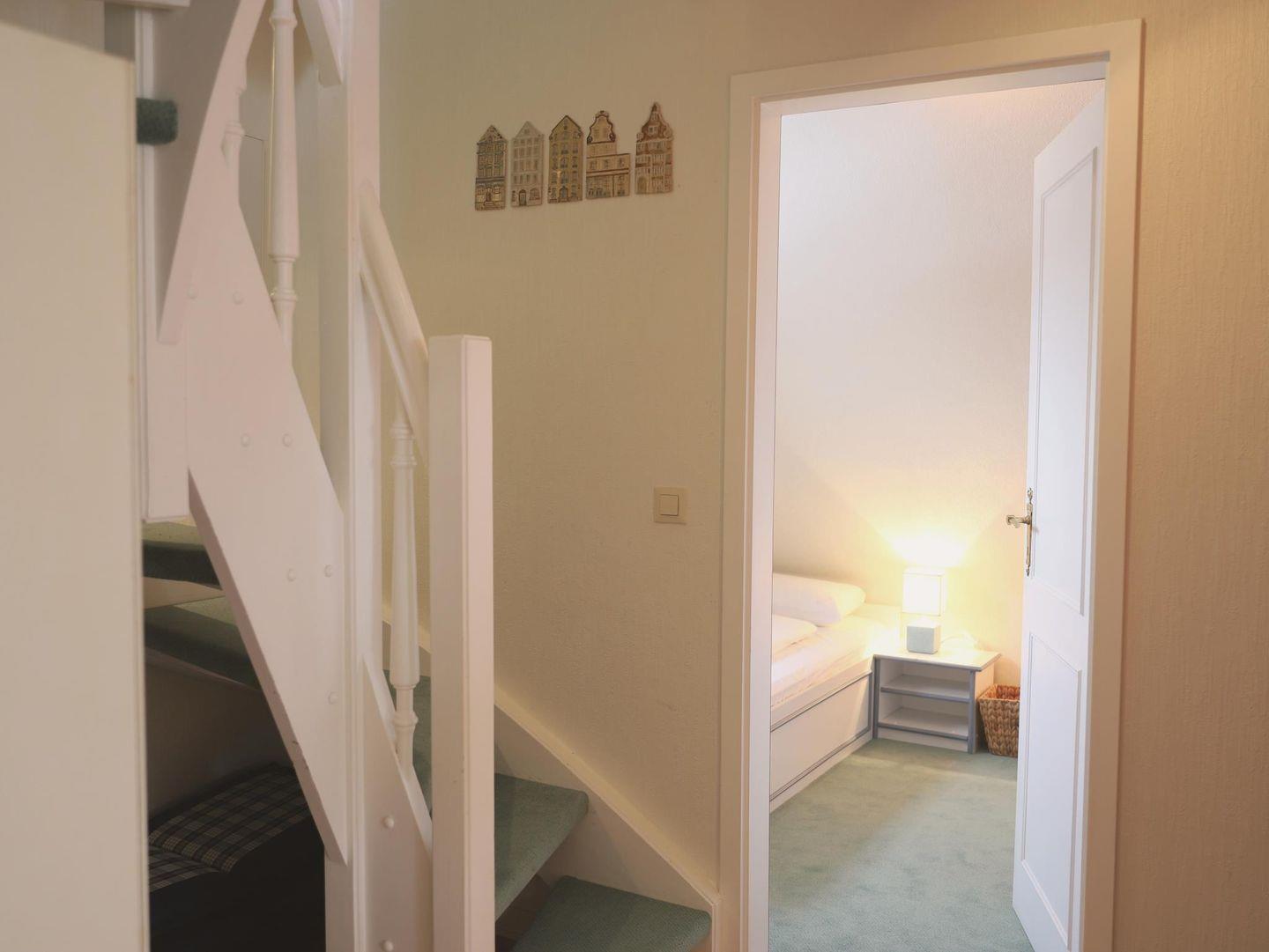 Diese 82 m² große Dachgeschosswohnung in einer ruhigen Sackgasse am Rande von Westerland/Wenningstedt bietet Platz für bis zu 4 Personen. Zwei Schlafzimmer stehen zur Verfügung: eines mit Doppelbett (180 x 200 cm) und Kabel-TV, das andere mit zwei Einzelbetten (90 x 200 cm). Zusätzlich gibt es eine Schlafkoje für Kinder bis 10 Jahre. Der offene Wohn- und Essbereich mit moderner, voll ausgestatteter Küche sorgt für Komfort. Ein helles, saniertes Duschbad sowie eine en suite Toilette ergänzen die Ausstattung. Genießen Sie den West-Balkon mit Gartentisch und Stühlen. Der Strand und das Stadtzentrum sind in 15 Gehminuten erreichbar. Einkaufsmöglichkeiten wie ein Bäcker und ein kleiner Supermarkt liegen nur 5 Minuten entfernt. Haustiere sind willkommen, und es stehen zwei kostenfreie Parkplätze zur Verfügung.