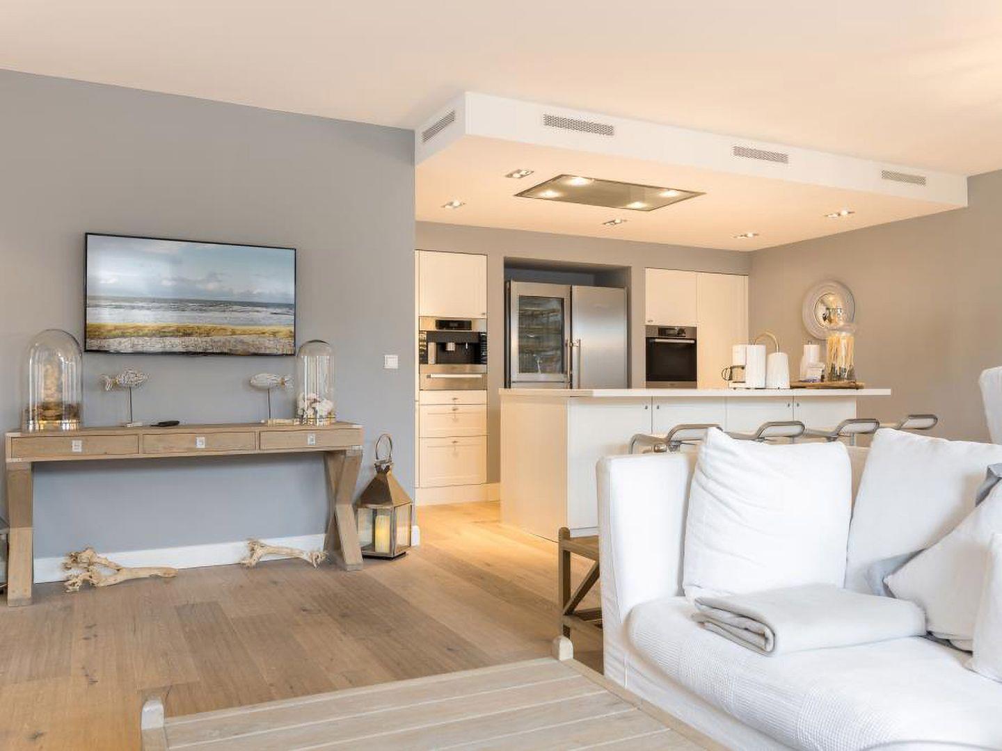 Dieses exklusive 3-Zimmer-Penthouse bietet modernen Komfort und eine fantastische Lage nur wenige Schritte vom Meer entfernt. Mit großzügigem Wohnbereich, 2 Schlafzimmern und einer weitläufigen Dachterrasse mit Strandkorb ist es der perfekte Rückzugsort für bis zu 4 Personen.