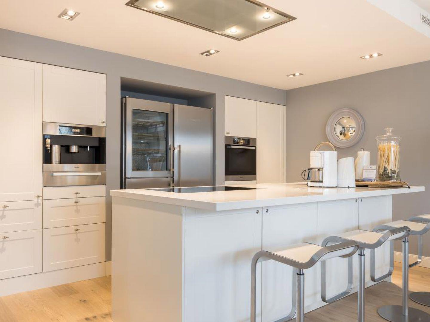 Das luxuriöse 3-Zimmer-Penthouse in direkter Meeresnähe bietet Ihnen eine exklusive Ferienerfahrung. Auf etwa 100 m² finden Sie ein stilvoll eingerichtetes Wohnzimmer mit Essecke, das Platz für bis zu 6 Personen bietet. Die offene Küche ist mit modernen Annehmlichkeiten ausgestattet, darunter ein Weinkühlschrank und ein integrierter Kaffeeautomat, ideal für gemütliche Auszeiten. Zwei Schlafzimmer, eines mit einem komfortablen Boxspringbett (180 x 200 cm) und das andere mit einem praktischen Schrankbett (140 x 200 cm), sorgen für erholsamen Schlaf. Das hochwertige Duschbad mit WC rundet das Angebot ab. Genießen Sie die Sonne auf der über 100 m² großen Dachterrasse mit Strandkorb, die sich über die Nord- und Westseite des Penthouses erstreckt. Haustiere sind nicht erlaubt. Ein Tiefgaragenstellplatz und ein Fahrradkeller (mit Hinweis auf keine garantierte Stellplatzverfügbarkeit) sorgen für zusätzlichen Komfort. Eine Nichtraucherwohnung mit Fahrstuhl und Waschtrockner rundet das Angebot ab.