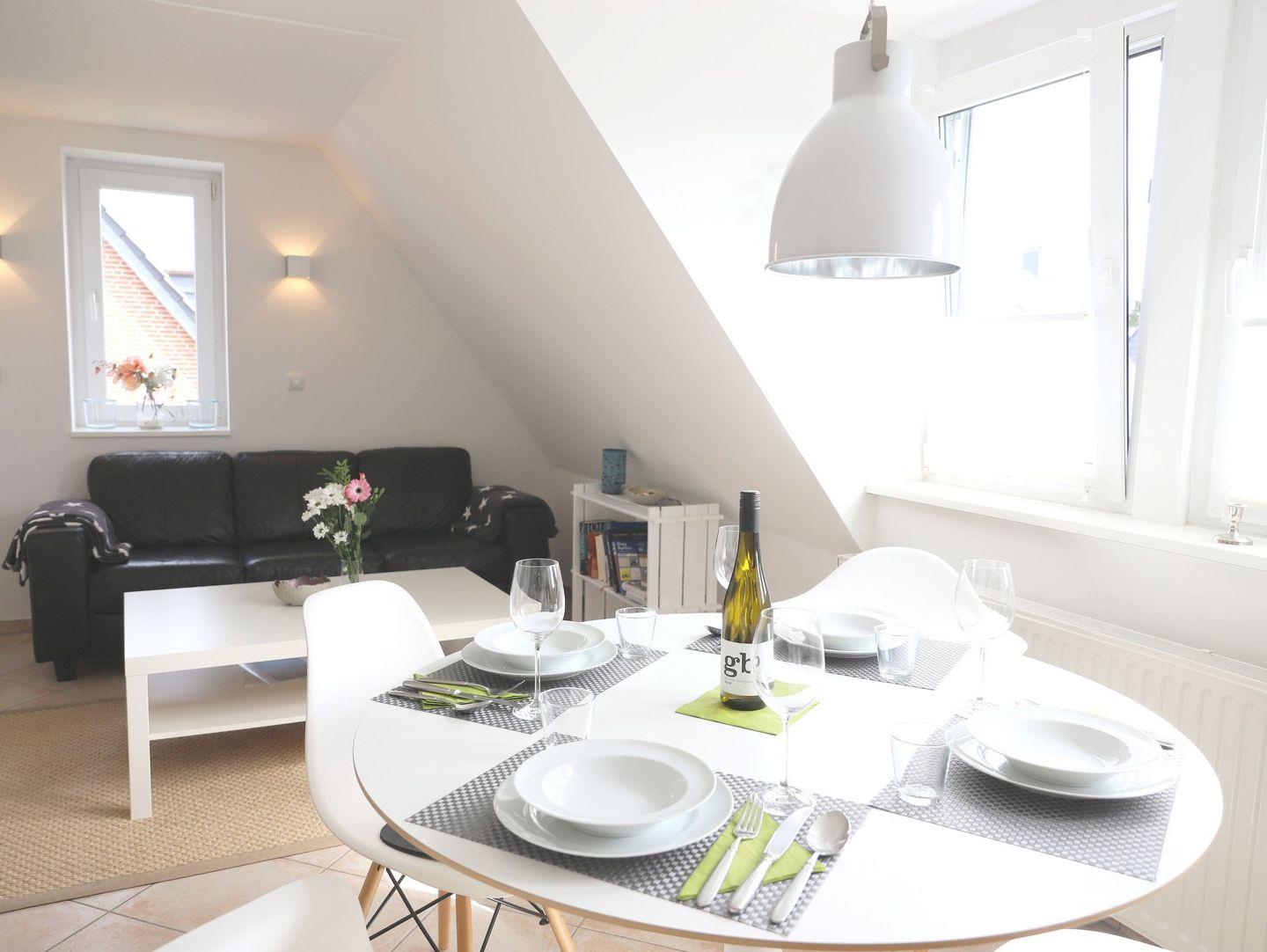 39 m² Dachgeschosswohnung für 2 Personen in Westerland. Ruhige Lage nahe Friedrichshain und Strand, Süd-Terrasse, Gartennutzung, Fire TV-Stick. Keine Haustiere erlaubt.