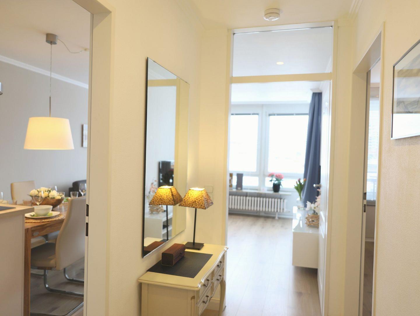 Gemütliches Appartement in Westerland (ca. 55 m²) für 2 Personen. 1 Schlafzimmer, 1 Badezimmer, Westbalkon. Nur wenige Minuten zum Strand, Bahnhof und Einkaufsmöglichkeiten. Tiefgaragenstellplatz (kostenpflichtig), Waschmaschine und Trockner mit Münzzähler.