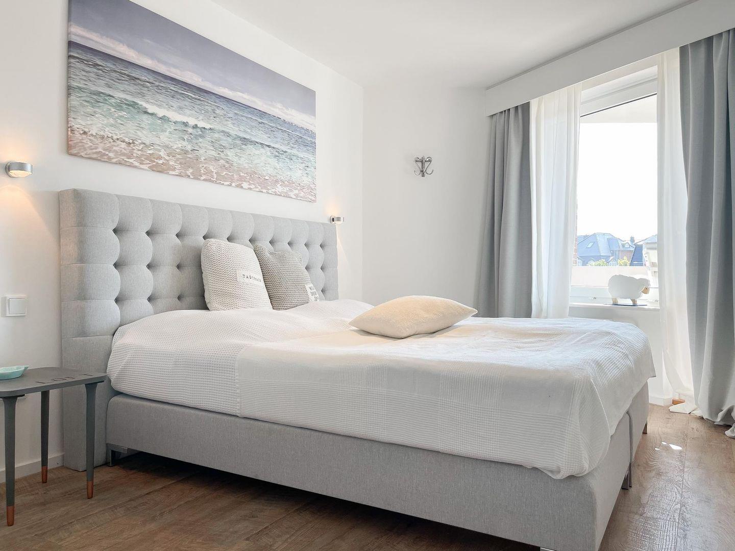 Stilvolle Wohnung (ca. 51 m²) in Westerland für bis zu 3 Personen. 1 Schlafzimmer, 1 Badezimmer, Schlafsofa im Wohnzimmer. Westbalkon, Parkgarage (Höhe 2m, Breite 2,4m, Länge 5,7m). WLAN, Waschmaschine und Trockner zur gemeinschaftlichen Nutzung. Haustiere sind nicht gestattet.
