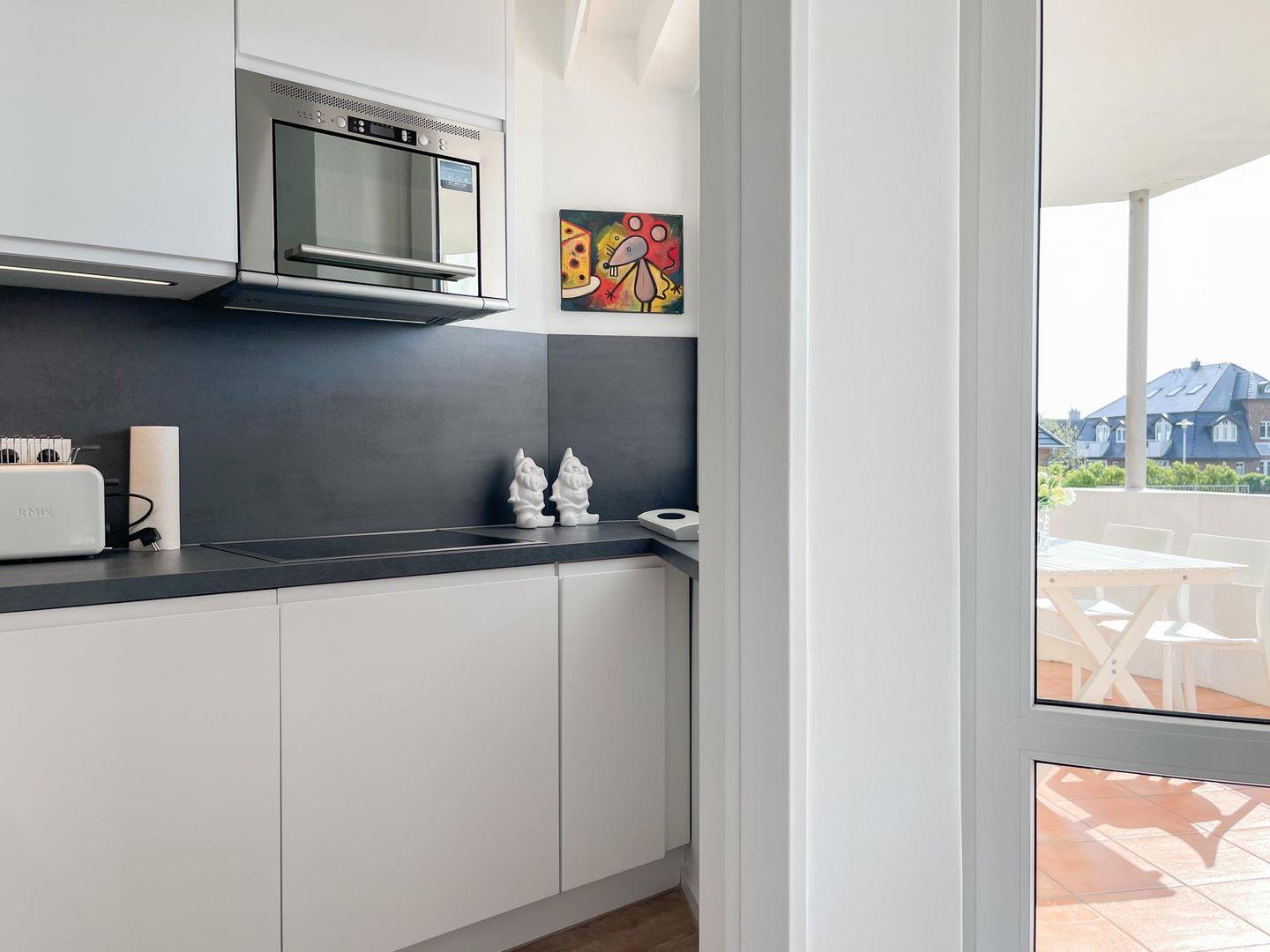 Diese exklusive, renovierte Wohnung (ca. 51 m²) in Westerland bietet einen stilvollen Rückzugsort für bis zu 3 Personen. Sie befindet sich im Hochparterre einer gepflegten, ruhig gelegenen Wohnanlage, nur 350 Meter vom Strand entfernt. Die geschmackvolle Einrichtung mit viel Liebe zum Detail sorgt für eine angenehme Atmosphäre. Das Wohn-/Esszimmer ist mit einem Schlafsofa (160 x 190 cm), TV, Bluetooth-Lautsprecher und WLAN ausgestattet. Der gemütliche Essbereich bietet Platz für 4 Personen. Der große Westbalkon lädt zum Entspannen ein und ermöglicht den Genuss des nahegelegenen Meeresrauschens. Die neue Einbauküche verfügt über eine Spülmaschine und Mikrowelle. Das separate Schlafzimmer ist mit einem Boxspringbett (180 x 200 cm), einem Einbauschrank und TV ausgestattet. Das moderne Duschbad rundet das Angebot ab. Zur gemeinschaftlichen Nutzung stehen eine Waschmaschine und ein Trockner (Münzgeräte) im Keller zur Verfügung. Eine Parkgarage gehört zur Wohnung, Maße: Höhe 2m, Breite 2,4m, Länge 5,7m.