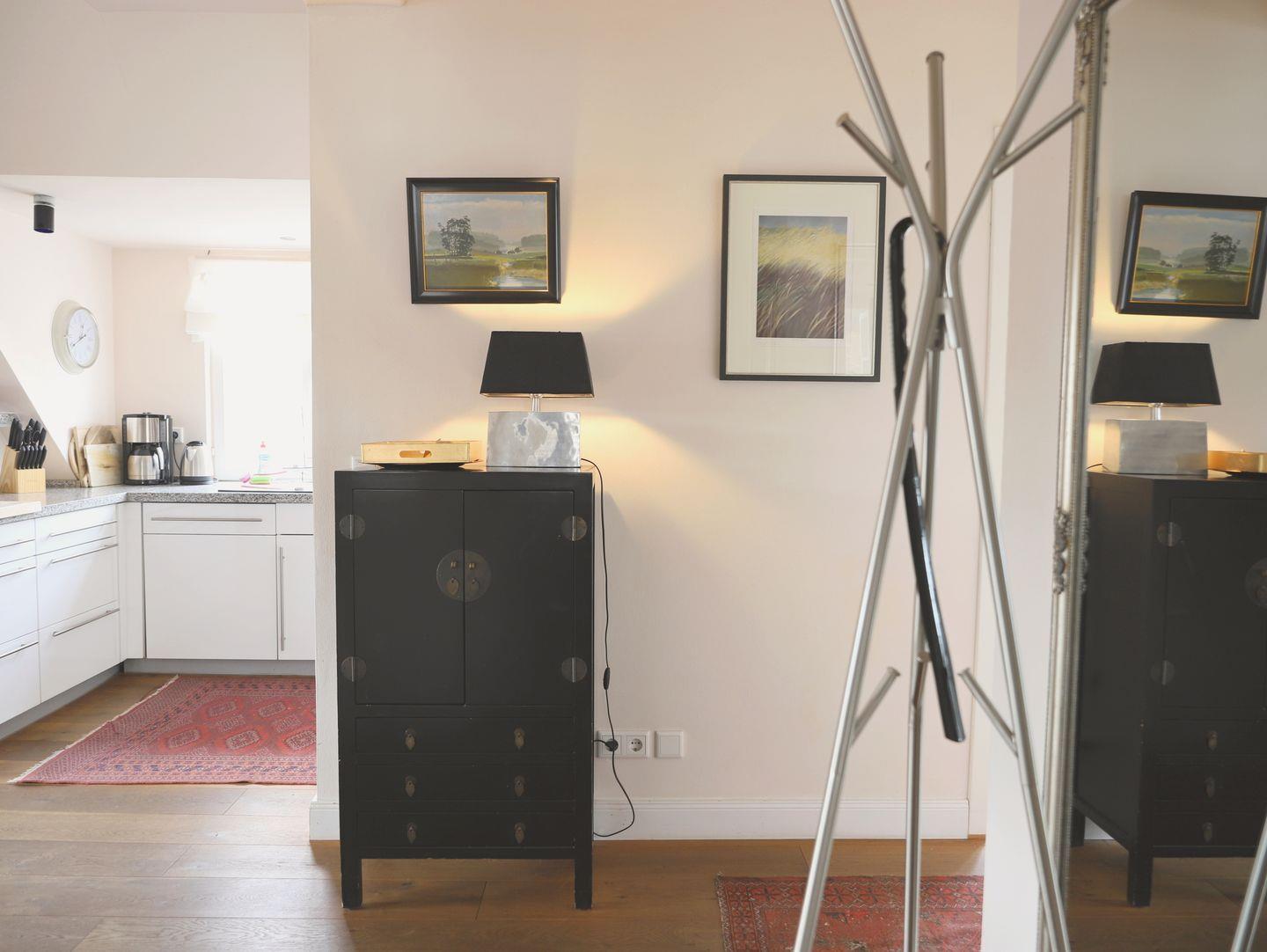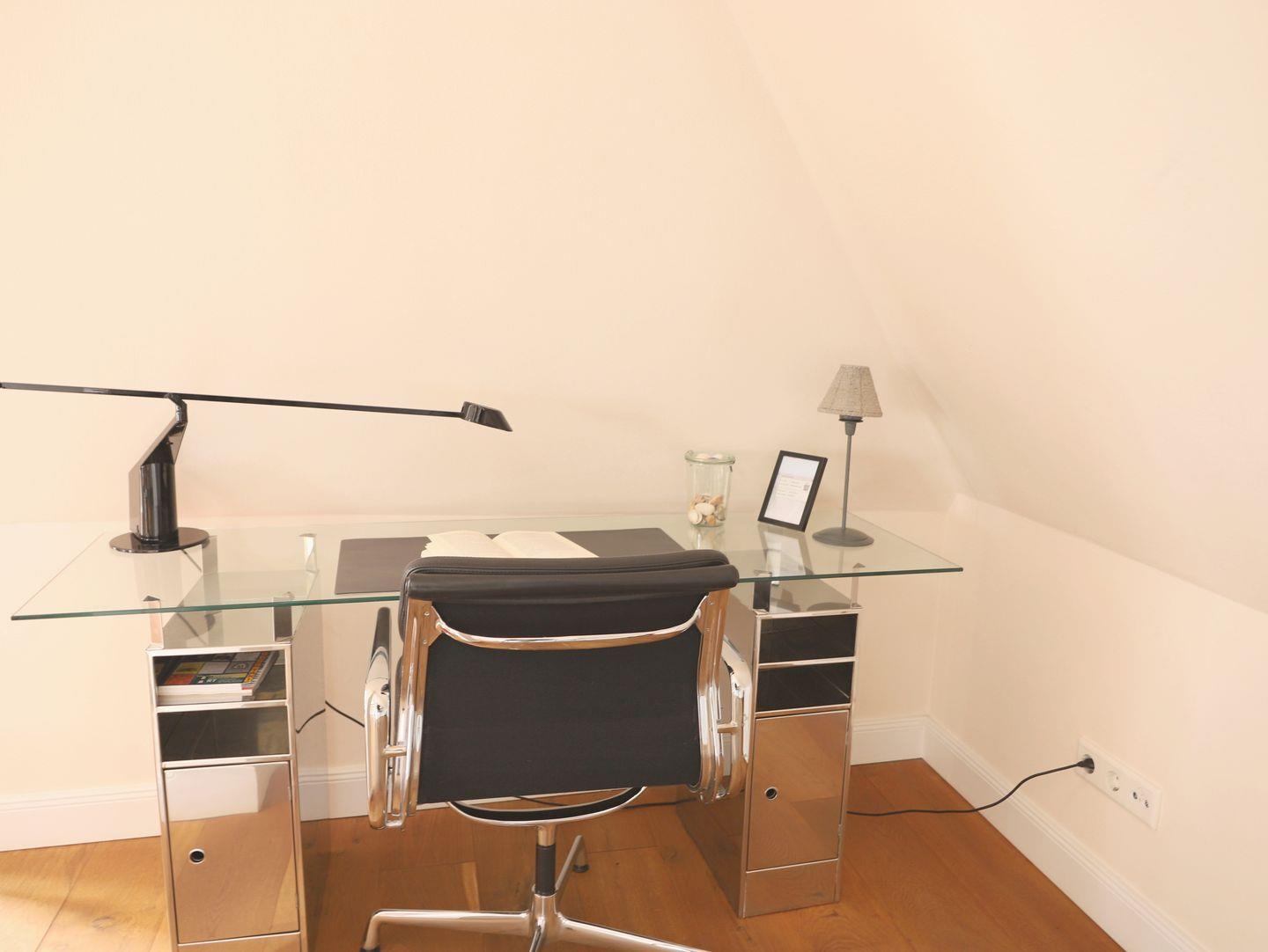 Das modern eingerichtete 3-Zimmer-Appartement im Dachgeschoss mit Spitzboden liegt in einer ruhigen und zentralen Lage in Westerland, nur wenige Gehminuten vom Strand und der Innenstadt entfernt. Auf etwa 85 m² finden Sie ein gemütliches Wohnzimmer mit TV, eine Essecke und eine voll ausgestattete Küche mit Geschirrspüler, Ceranfeldherd, Backofen, Mikrowelle, Kaffeemaschine, Wasserkocher und Toaster. Das Appartement bietet 2 Schlafzimmer, eines mit einem Doppelbett (180 x 200 cm) und begehbarem Kleiderschrank, das andere mit einem Doppelbett (160 x 200 cm). Das Bad ist mit einer Dusche und WC ausgestattet. Vom Wohnzimmer führt eine Treppe in die offene Galerie (Spitzboden), wo ein weiteres Doppelbett für zusätzlichen Schlafplatz sorgt. Ein Süd-Balkon lädt zum Entspannen ein. Haustiere sind willkommen. Der kostenfreie Stellplatz am Haus sowie die Waschmaschinen- und Trocknermöglichkeiten im Keller (mit Münzzähler) bieten weiteren Komfort. Diese Nichtraucherwohnung ist ideal für einen erholsamen Aufenthalt auf Sylt.