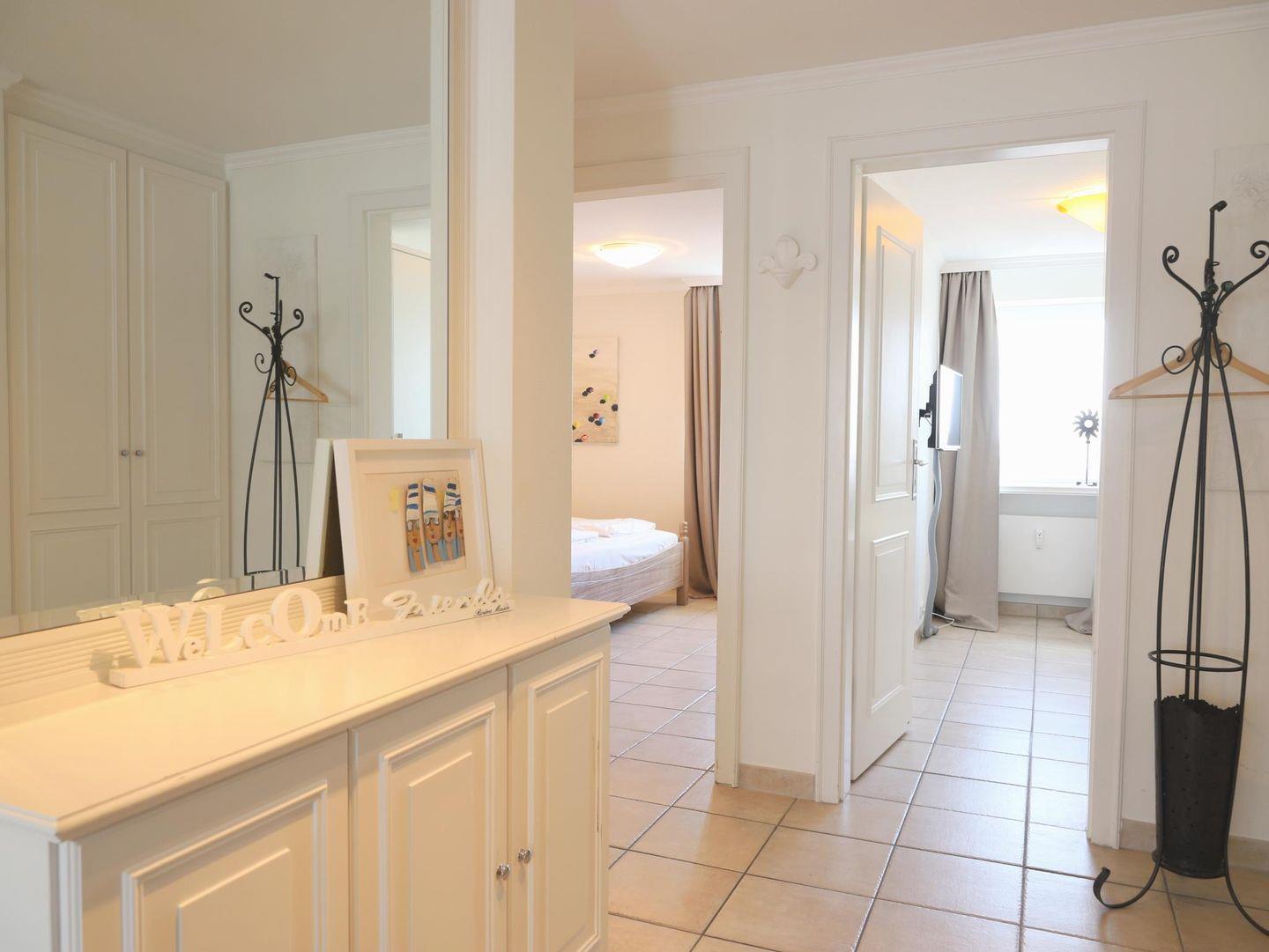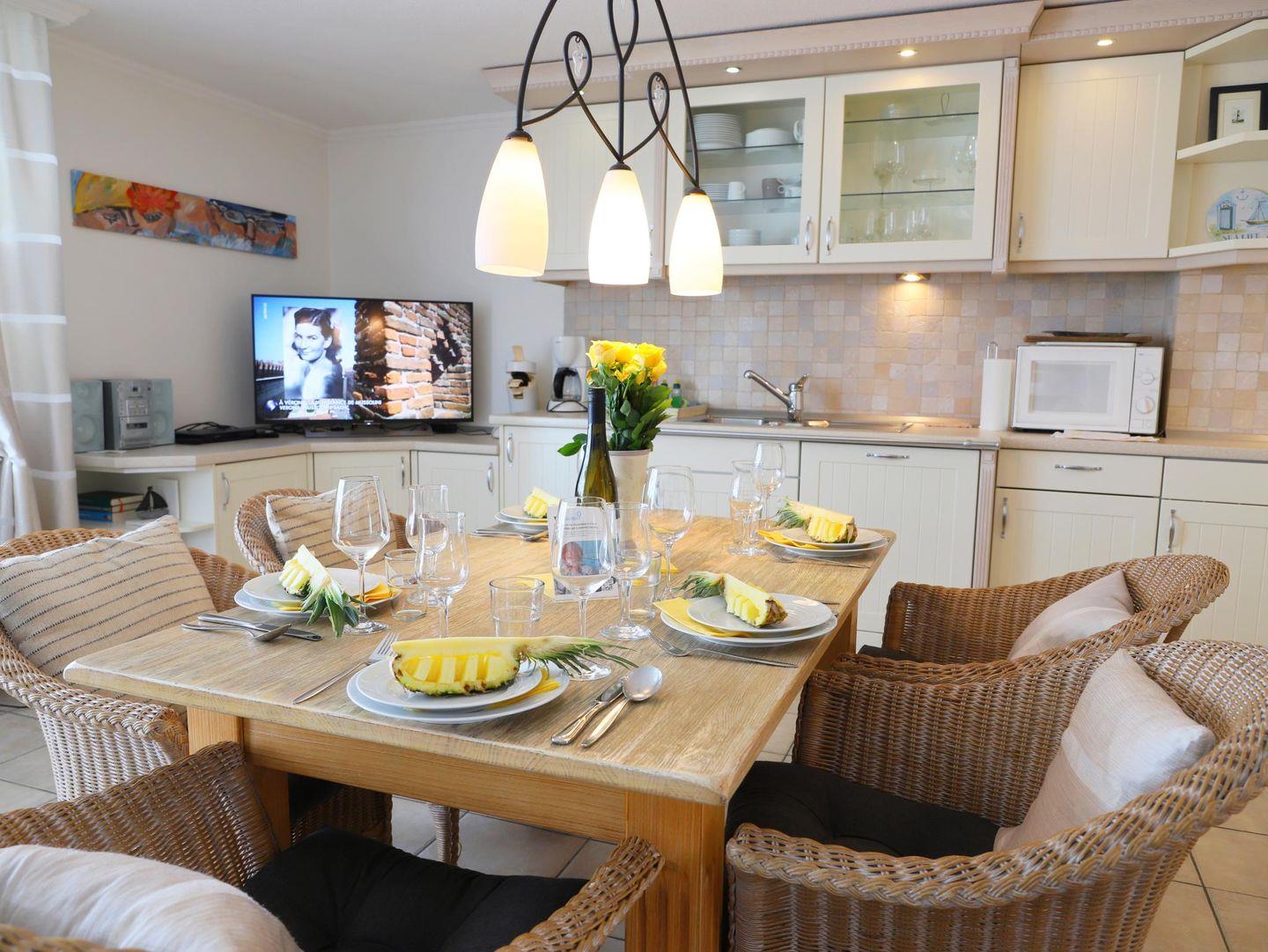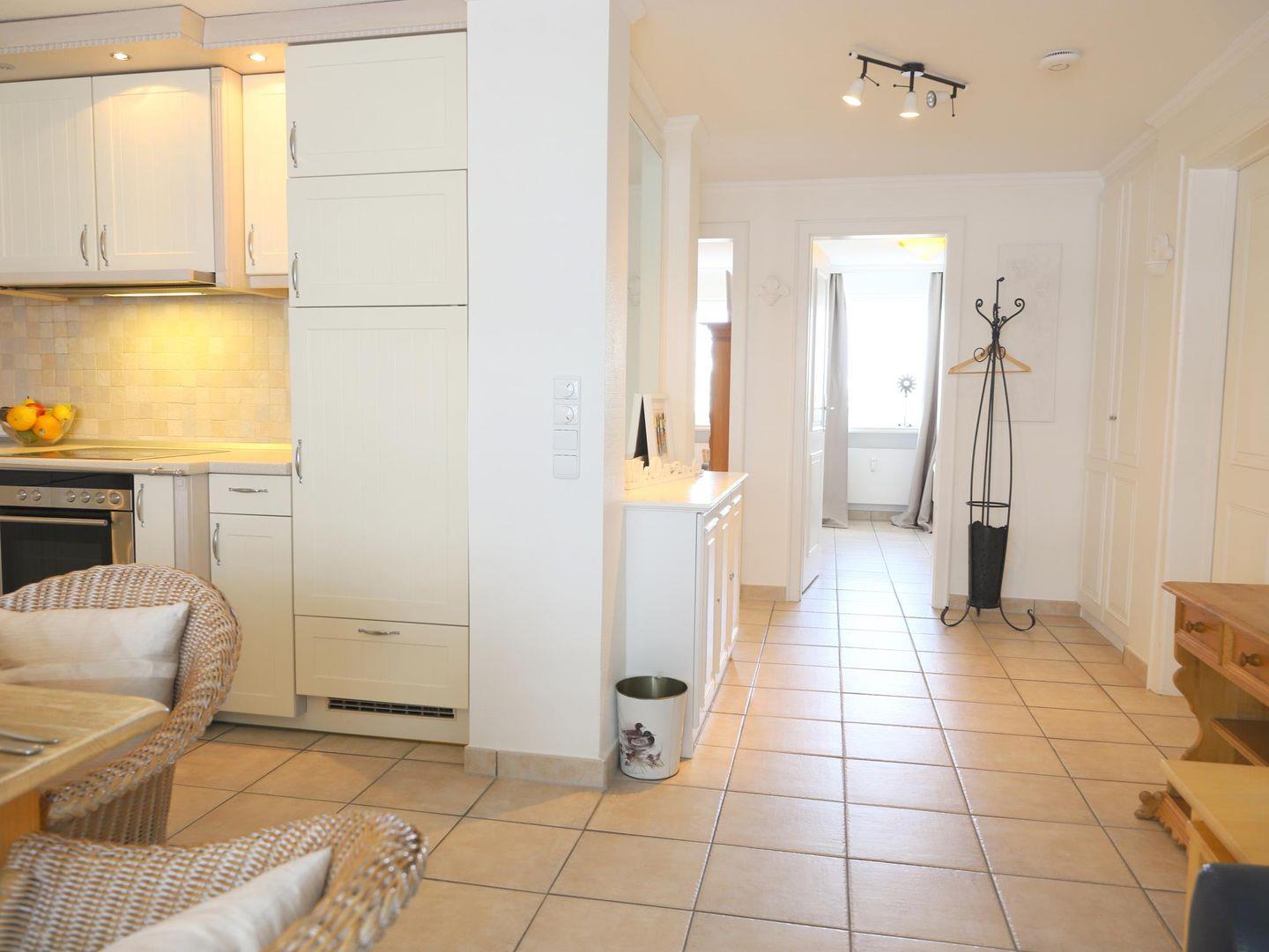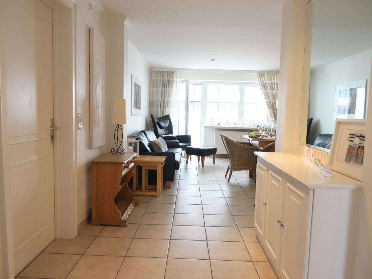 Moderne 3-Zimmer-Ferienwohnung im "Haus Andreas-Dirks" im 4. Obergeschoss, ca. 65 m², mit Westbalkon und kleinem Meerblick. Die Nichtraucherwohnung bietet Platz für bis zu 4 Personen und verfügt über einen großzügigen Wohn-/Essbereich, eine voll ausgestattete Küche, zwei Schlafzimmer und ein Vollbad. Haustiere sind nicht erlaubt. Ideal für alle, die Komfort und zentrale Lage in Westerland genießen möchten.