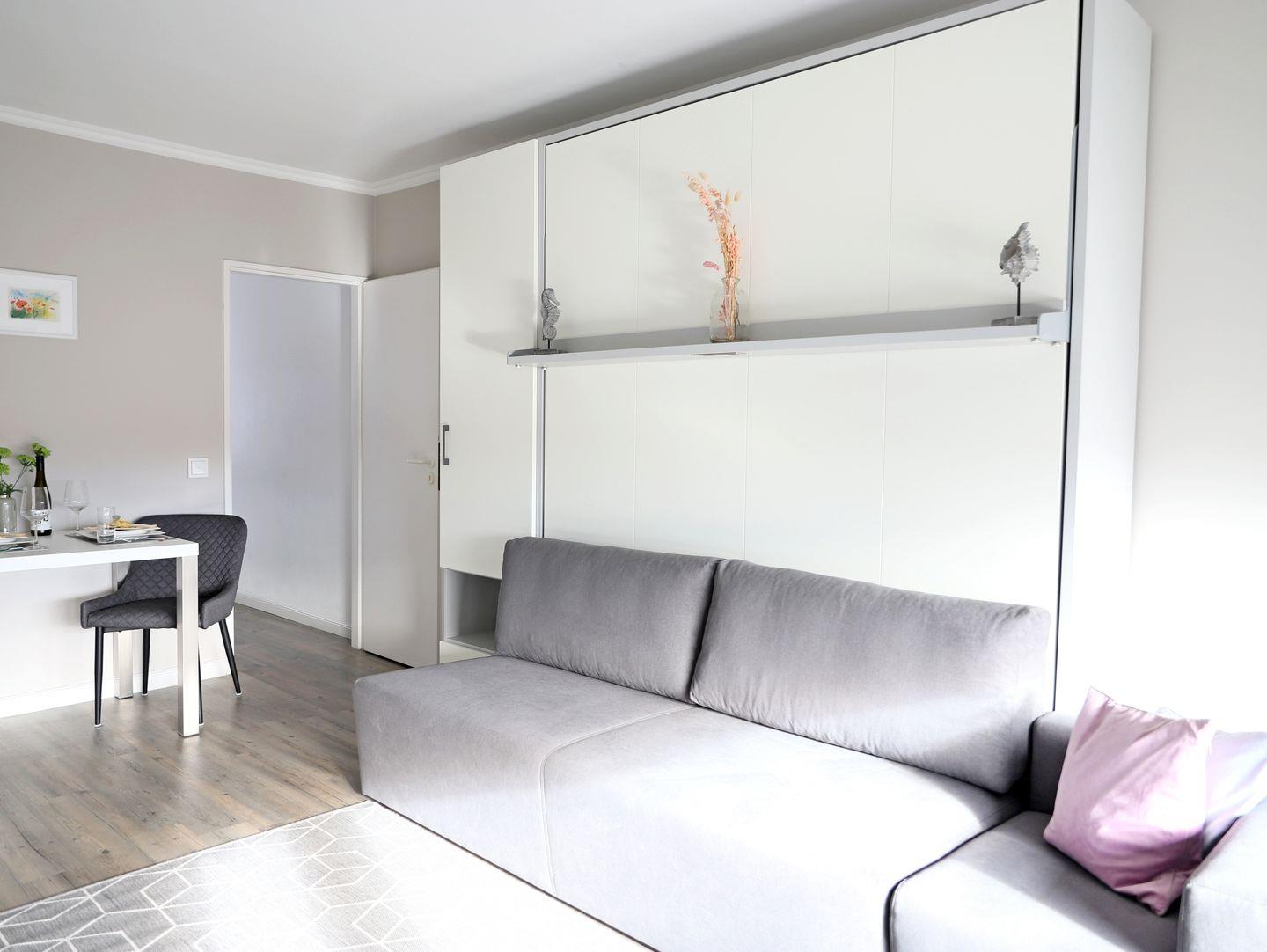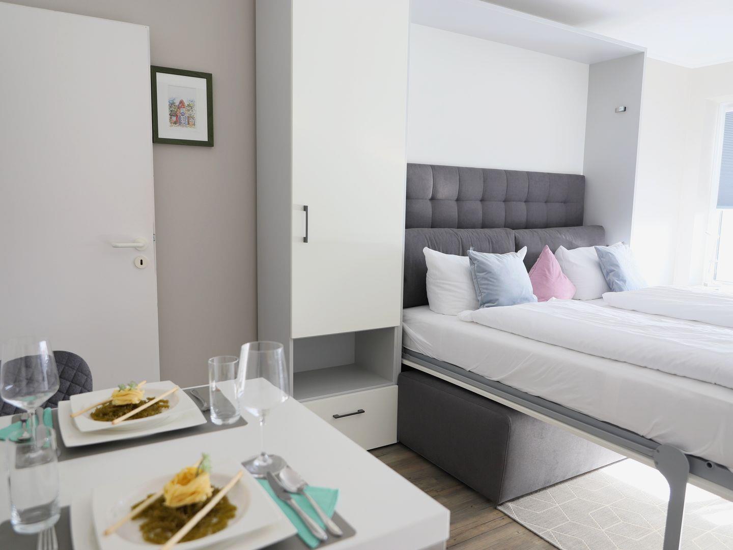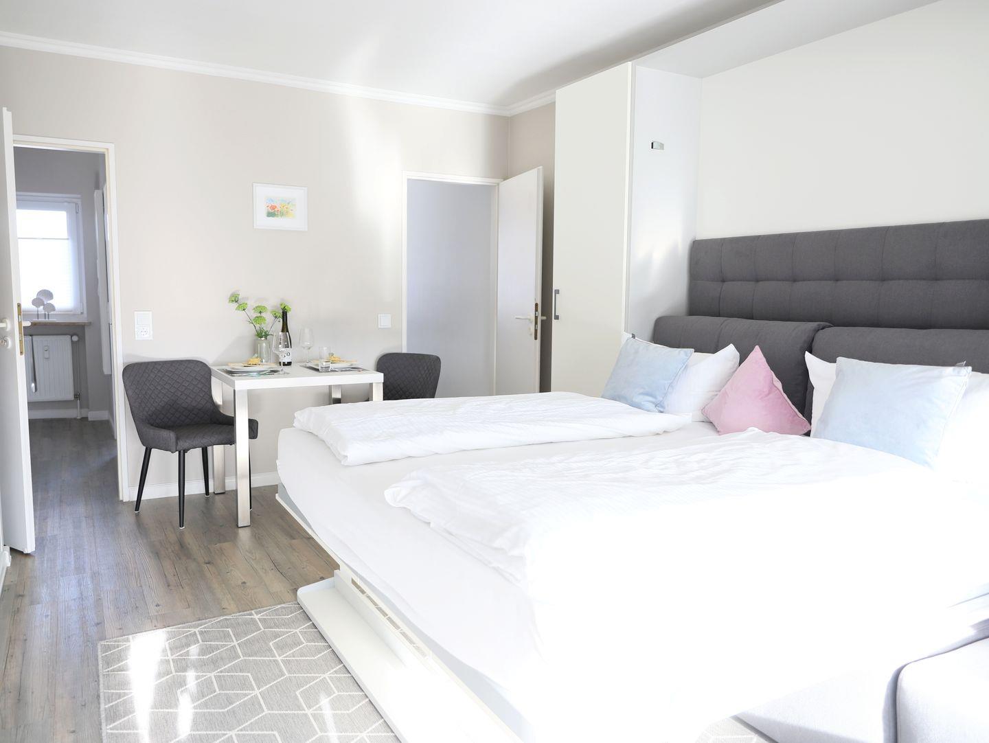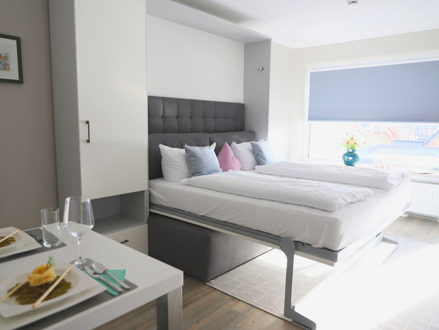 SeeTied, stilvolles, helles 1-Zimmer-Appartement für 2 Personen in zentraler Lage von Westerland. Hochwertiges Schrank- Doppelbett, voll ausgestattete separate Küche, modernes Bad, Südbalkon und kostenfreier PKW-Stellplatz.