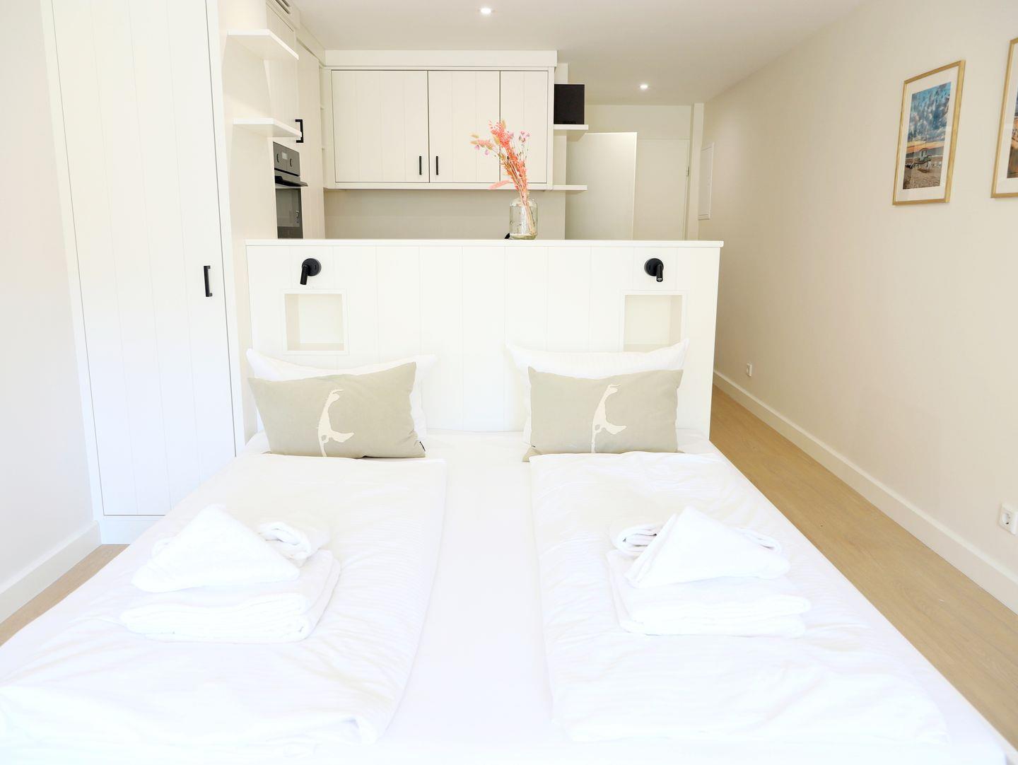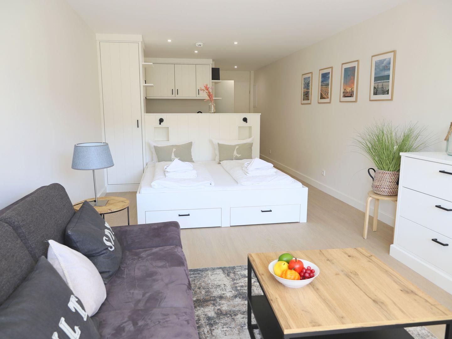Charmante 40 m² Ferienwohnung im Herzen Westerlands. Nordbalkon, Fahrstuhl, Doppelbett (180 x 200 cm). Perfekt für 2 Personen. Tiefgaragenplatz buchbar. Haustiere sind nicht erlaubt!