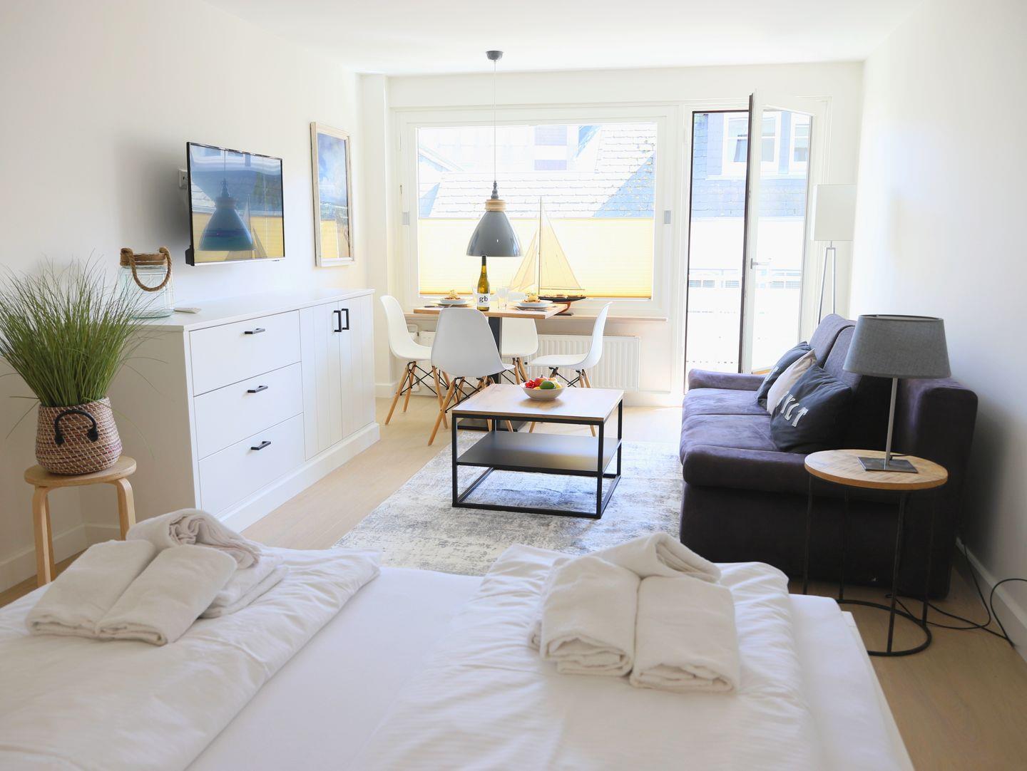 Zentrales 1-Zimmer-Appartement in Westerland mit Nordbalkon und Fahrstuhl, ideal für einen erholsamen Sylt-Urlaub zu zweit.