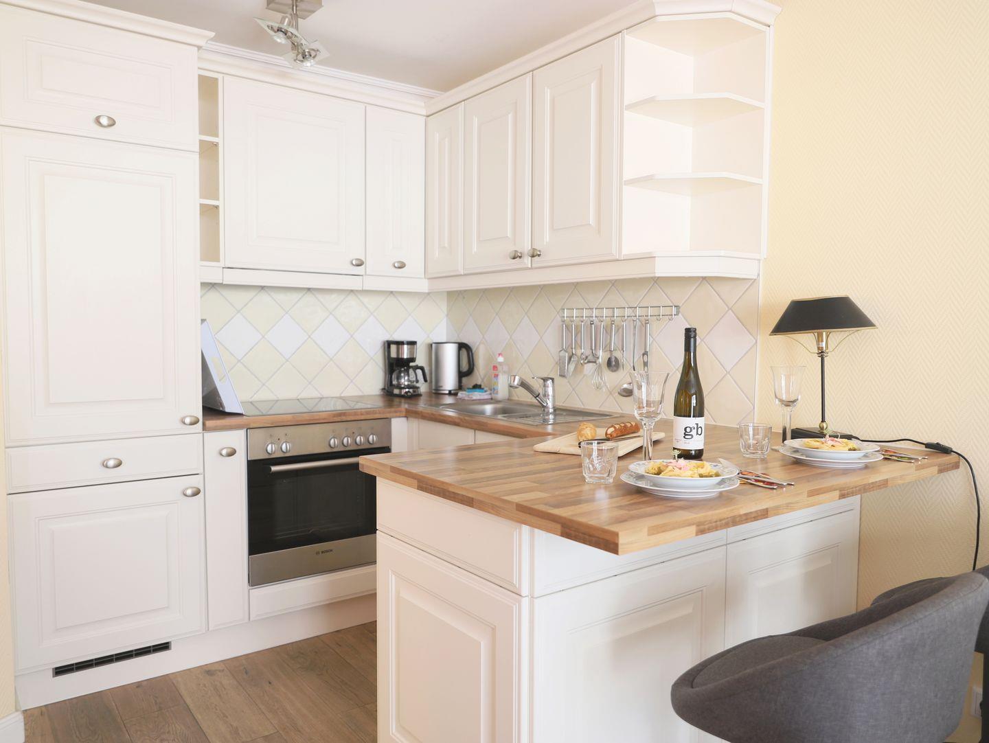 Dieses moderne 48 m² große Appartement im Herzen von Westerland bietet Komfort für bis zu 2 Personen. Das Appartement befindet sich im 2. Stockwerk. Das Haus Ankerlicht befindet sich in zentraler Lage und ist bequem mit dem Fahrstuhl erreichbar. Der West-Balkon lädt zum Entspannen ein und ist mit einem Gartentisch und Stühlen ausgestattet. Der Wohnbereich bietet eine hochwertige Einrichtung mit Flatscreen-TV und Esstresen. Die offene, neue Küche verfügt über ein Cerankochfeld, Backofen und Geschirrspüler – ideal für Selbstversorger. Im Schlafzimmer mit Doppelbett (160 x 200 cm) sorgt ebenfalls ein Flatscreen-TV für Unterhaltung. Das moderne Duschbad mit Travertin rundet das stilvolle Ambiente ab. Ein Tiefgaragenstellplatz (max. Durchfahrtshöhe 1,8 m) gehört zur Wohnung. Für Fahrräder gibt es einen Abstellraum (Platz nicht garantiert). Im Haus stehen Münz-Waschmaschine und -Trockner zur Verfügung. Haustiere sind herzlich willkommen.