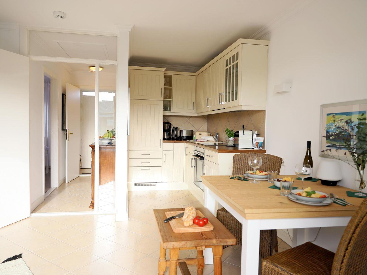 Diese stilvoll eingerichtete Zweizimmer-Wohnung bietet auf 45 m² alles für einen komfortablen Aufenthalt für 2 Personen. Im lichtdurchfluteten Wohn-/Esszimmer mit offener, gut ausgestatteter Küche genießen Sie moderne Annehmlichkeiten wie WLAN, Smart-TV und ein Digitalradio mit Bluetooth-Anschluss. Die Küche verfügt über ein Ceran-Kochfeld, Backofen, Geschirrspüler sowie eine Filter- und Nespresso-Kaffeemaschine. Das Schlafzimmer helle bietet ein Doppelbett (180 x 200 cm) und einen geräumigen Einbauschrank. Das Tageslichtbad ist mit Fußbodenheizung ausgestattet. Der nach Süden ausgerichtete Balkon lädt mit Gartentisch, Stühlen und elektrischer Markise zum Entspannen ein. Ein kostenfreier Pkw-Stellplatz und eine überdachte Fahrradabstellmöglichkeit stehen zur Verfügung (kein garantierter Stellplatz). Haustiere sind willkommen. Zentral und ruhig gelegen, erreichen Sie die Fußgängerzone von Westerland in 5 Minuten zu Fuß und den Strand in 15 Minuten.