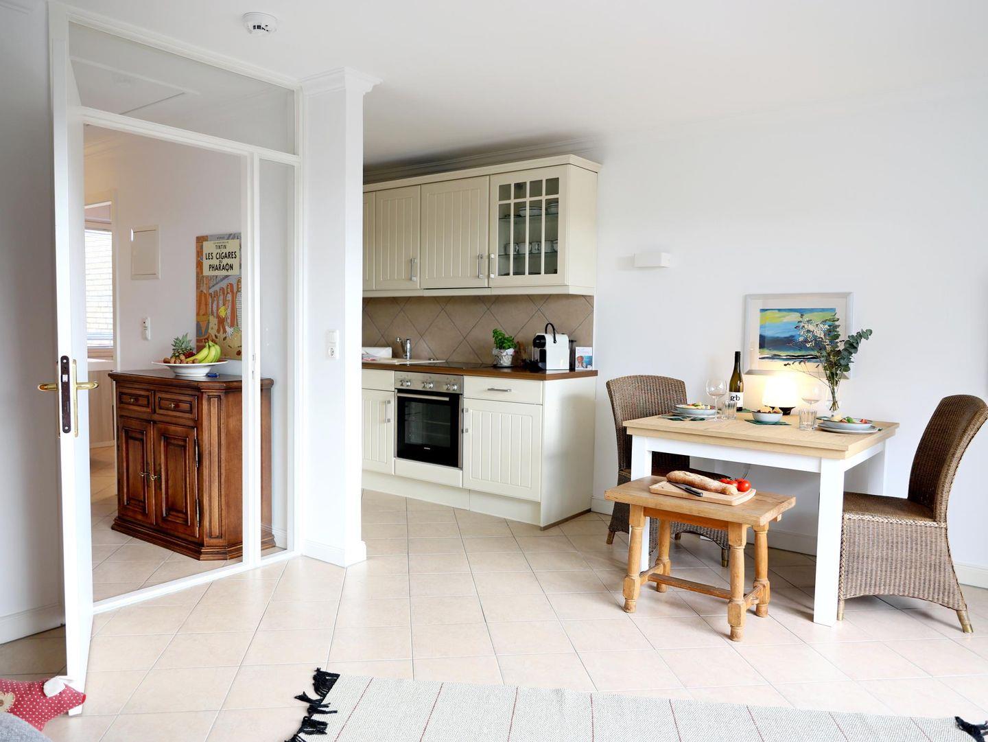 Hochwertige Ferienwohnung für 2 Personen im Herzen von Alt-Westerland. Südbalkon, moderne Küche, WLAN, Smart-TV. Haustiere willkommen. Zentral und ruhig gelegen, 15 Minuten zum Strand. Fahrradabstellplatz und kostenfreier Stellplatz vorhanden.