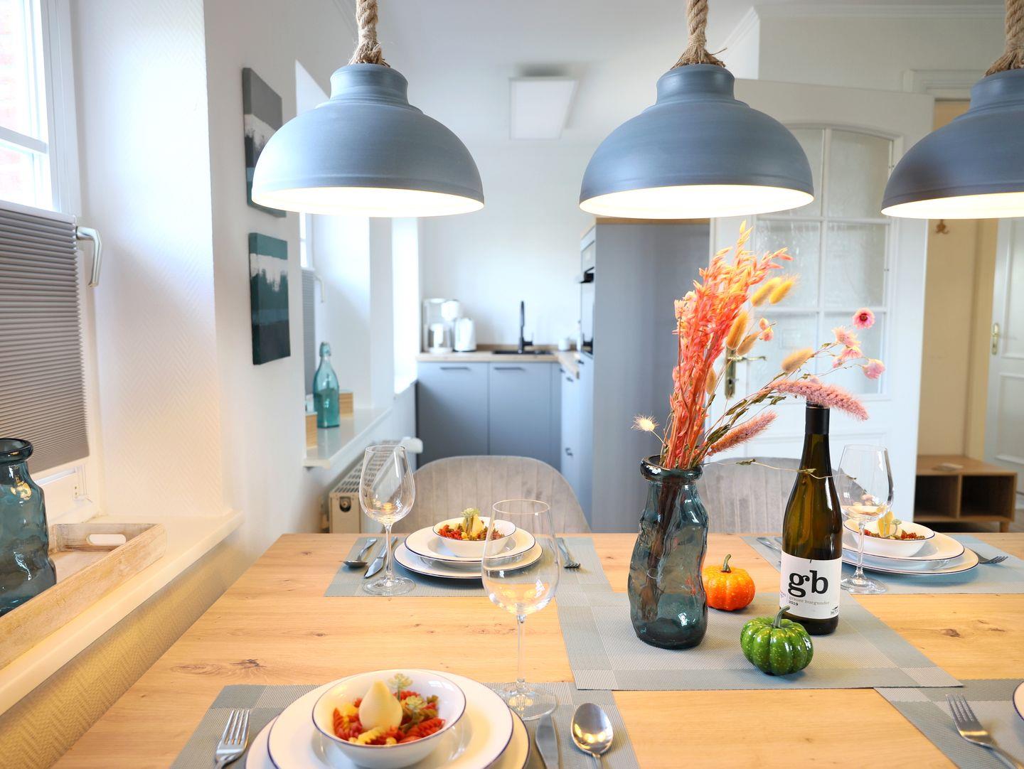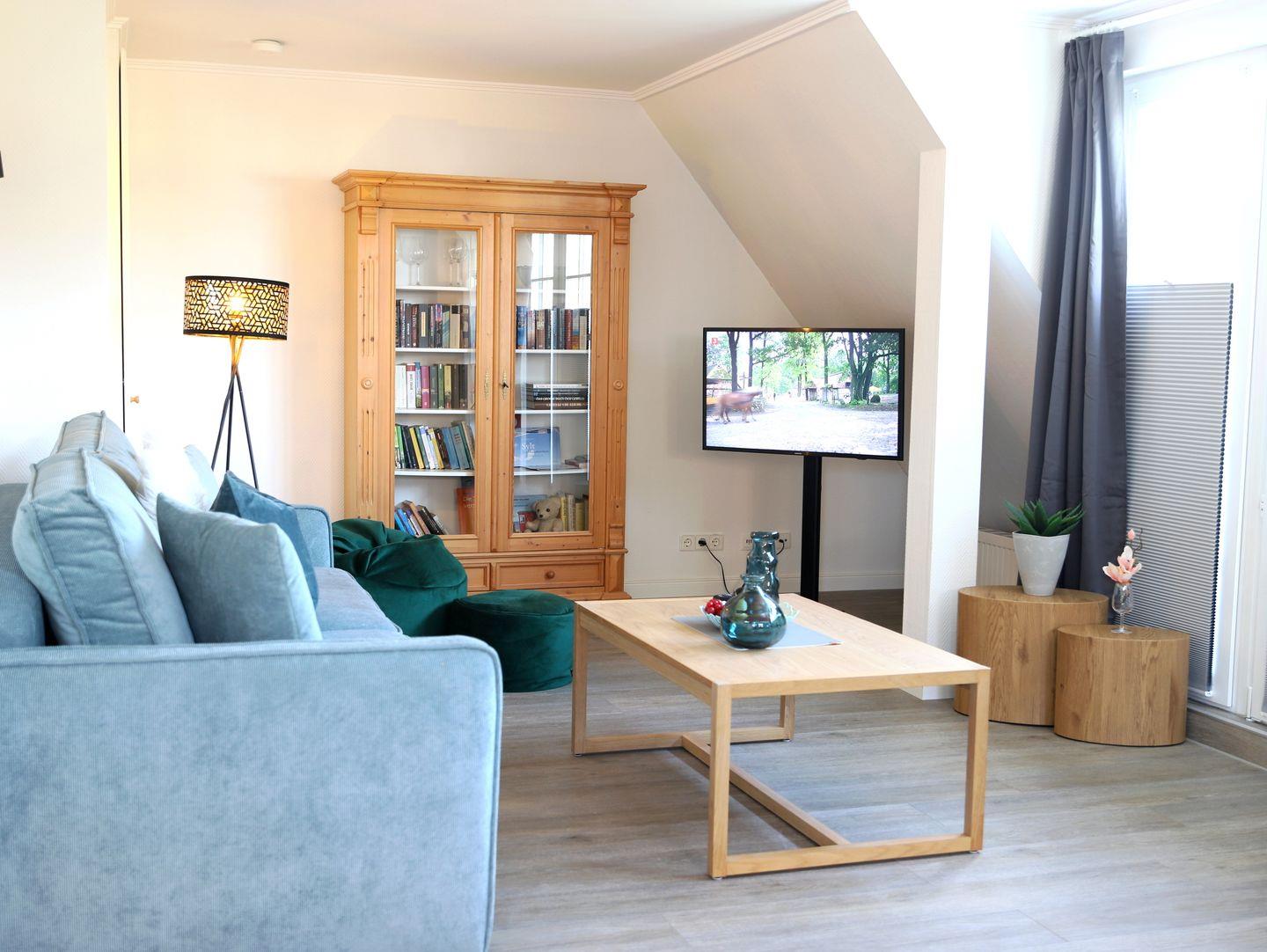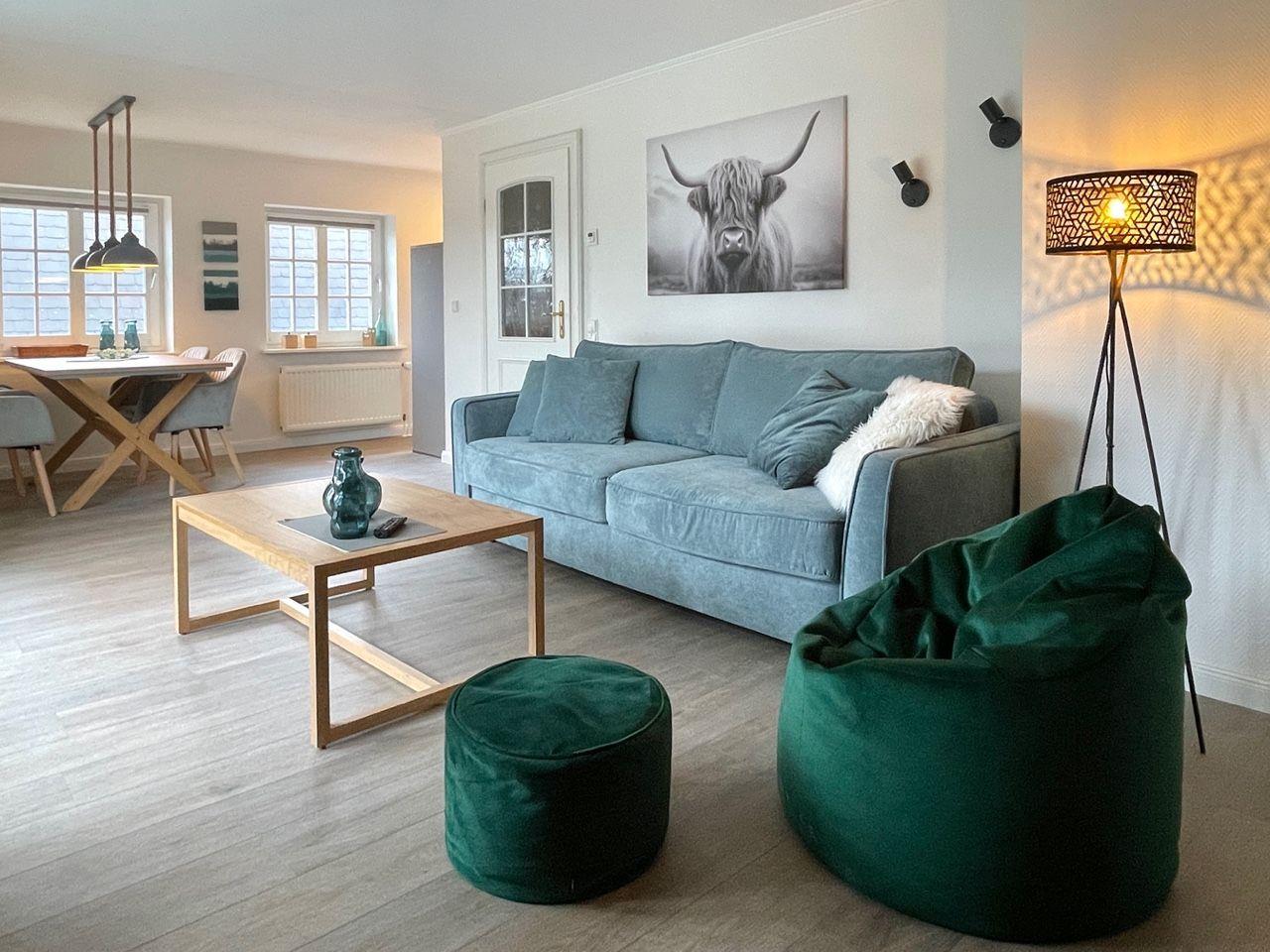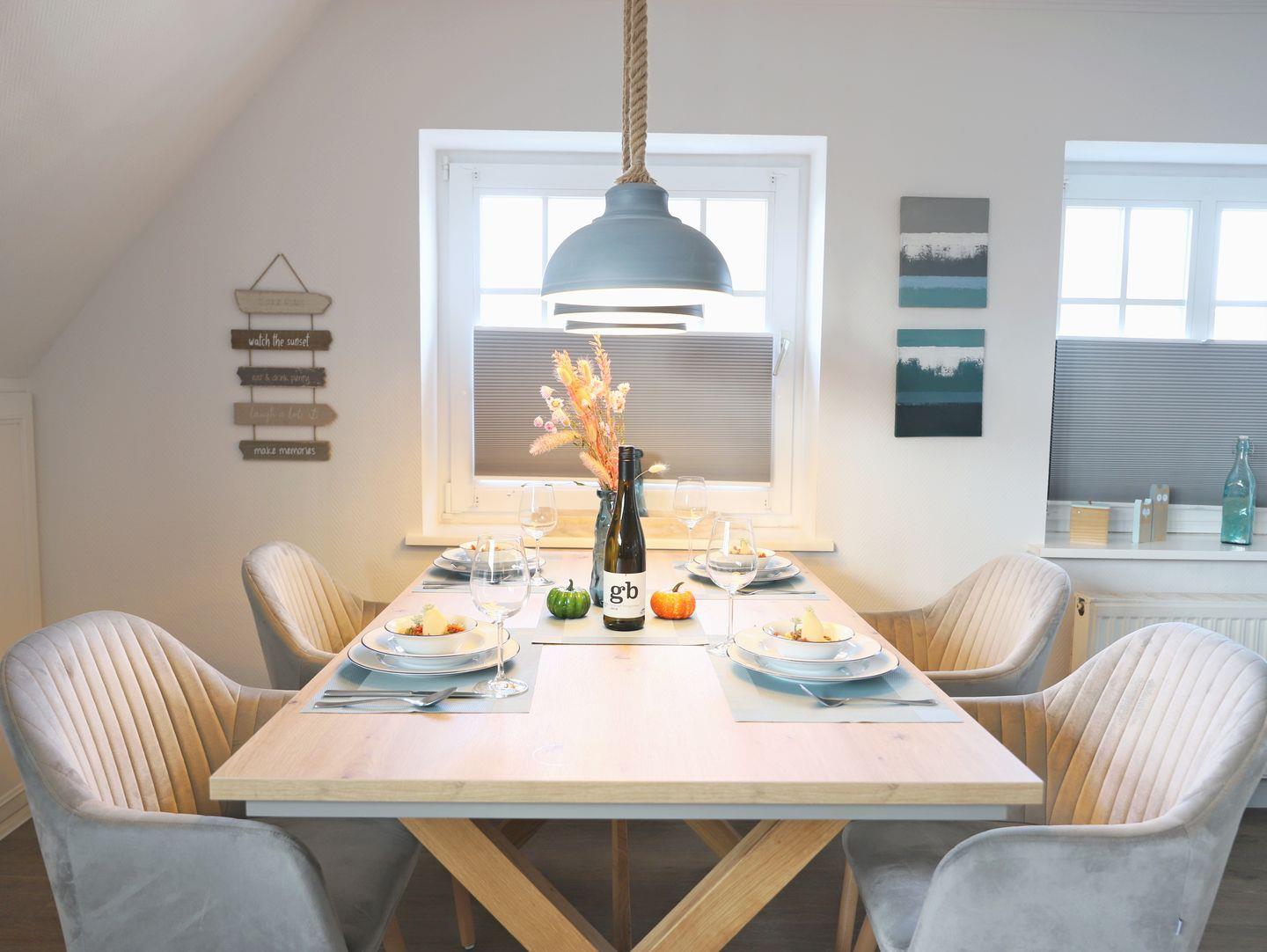 Diese neu renovierte 2-Zimmer-Ferienwohnung in der Gorch-Fock-Straße 1 überzeugt durch stilvolles Design und durchdachte Ausstattung. Mit rund 80 m² Wohnfläche über zwei Ebenen bietet sie bis zu 4 Personen ausreichend Raum. Das lichtdurchflutete Wohnzimmer im unteren Bereich verfügt über eine gemütliche Schlafcouch (140 x 200 cm), eine Essecke und eine moderne Küchenzeile mit Induktionskochfeld, Mikrowellen- und Backofenkombi sowie Spülmaschine. Zur Unterhaltung stehen ein TV und eine Stereoanlage bereit; eine umfangreiche Büchersammlung und verschiedene Spiele sorgen für zusätzliche Abwechslung. Der sonnige Süd/West-Balkon lädt zum Verweilen ein. Im Spitzboden befindet sich das komfortable Schlafzimmer mit Doppelbett (180 x 200 cm), das sich ebenso wie das Wohnzimmer verdunkeln lässt. Das großzügige Bad begeistert mit Badewanne, getrennter Dusche, WC, Bidet und Fußbodenheizung. Ein Waschtrockner sowie Bügelbrett und -eisen sind vorhanden. Haustiere sind herzlich willkommen. Der kostenfreie Privatparkplatz und ein Fahrradständer am Haus erleichtern Ihren Aufenthalt. In nur 7 Gehminuten erreichen Sie den Strand, während Geschäfte und Restaurants in etwa 10 Minuten fußläufig erreichbar sind.