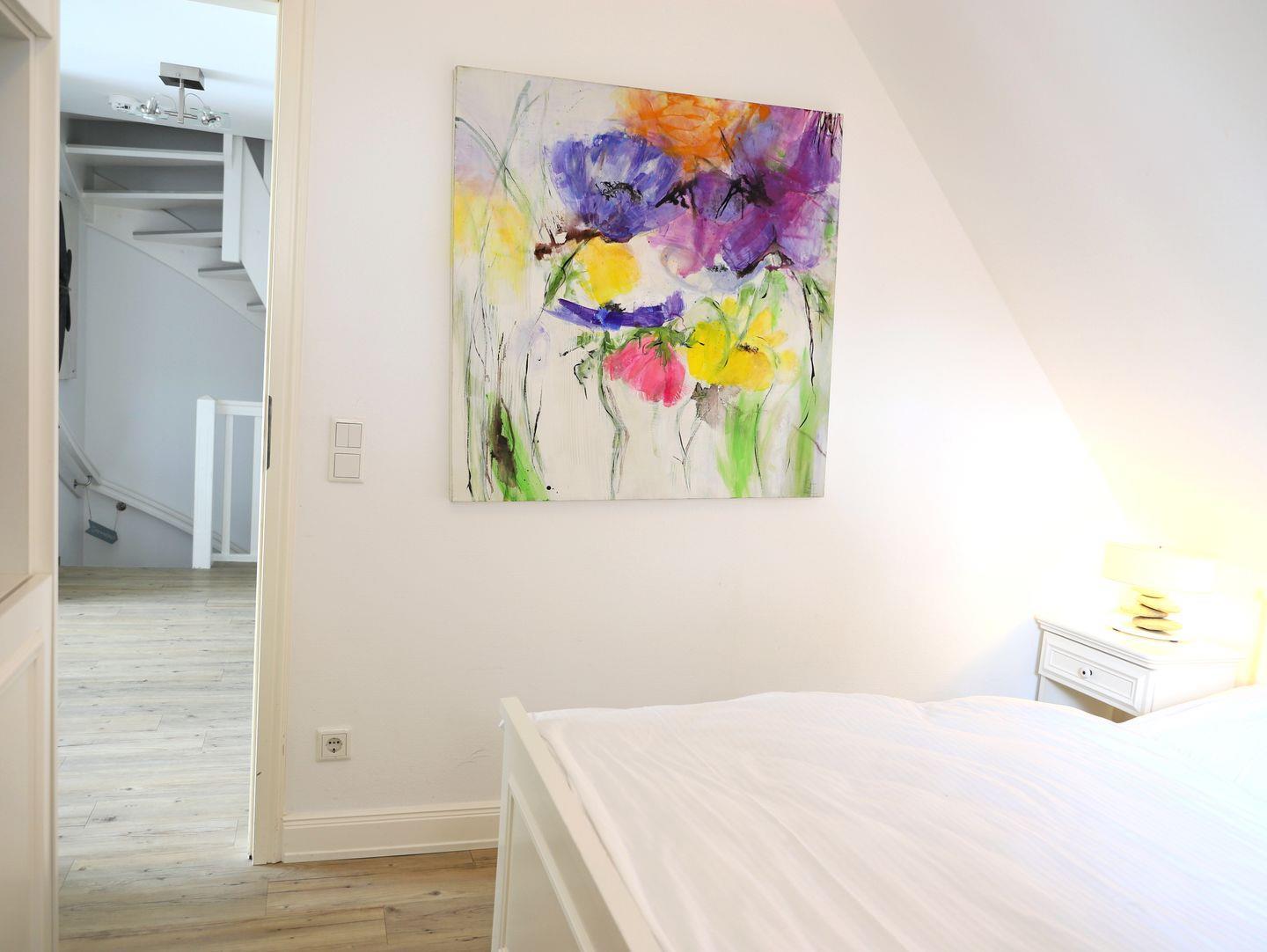 Diese helle und moderne Wohnung in Westerland bietet auf ca. 74 m² Platz für 4 Personen. Die Wohnung befindet sich im 1. Obergeschoss/Dachgeschoss und ist allergikerfreundlich. Sie verfügt über ein gemütliches Wohnzimmer mit Eckcouch, Flatscreen-TV sowie einen Essplatz. Die offene Küche ist voll ausgestattet, darunter ein Backofen, Cerankochfeld, Kühlschrank, Mikrowelle und Geschirrspüler. Zwei Schlafzimmer bieten je ein Doppelbett (180 x 200 cm und 160 x 200 cm) sowie Flatscreen-TVs. Das moderne, helle Duschbad ist mit Fenster und hochwertigen Armaturen ausgestattet. Ein schöner Süd-Balkon mit Gartentisch und Stühlen lädt zum Entspannen ein. Von hier aus können Sie das Meeresrauschen genießen. Ein kostenfreier Stellplatz befindet sich direkt vor dem Haus. Fahrräder können im Fahrradständer abgestellt werden (kein garantierter Stellplatz). Rauchen ist nur auf dem Balkon gestattet.