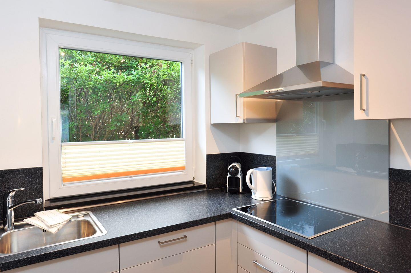 Ein weiteres Highlight der Ferienwohnung ist die Terrasse, auf der Sie die frische Meeresluft genießen und den Tag entspannt ausklingen lassen können. Der Gartenblick sorgt für eine angenehme Atmosphäre und lädt dazu ein, die Natur zu erleben.