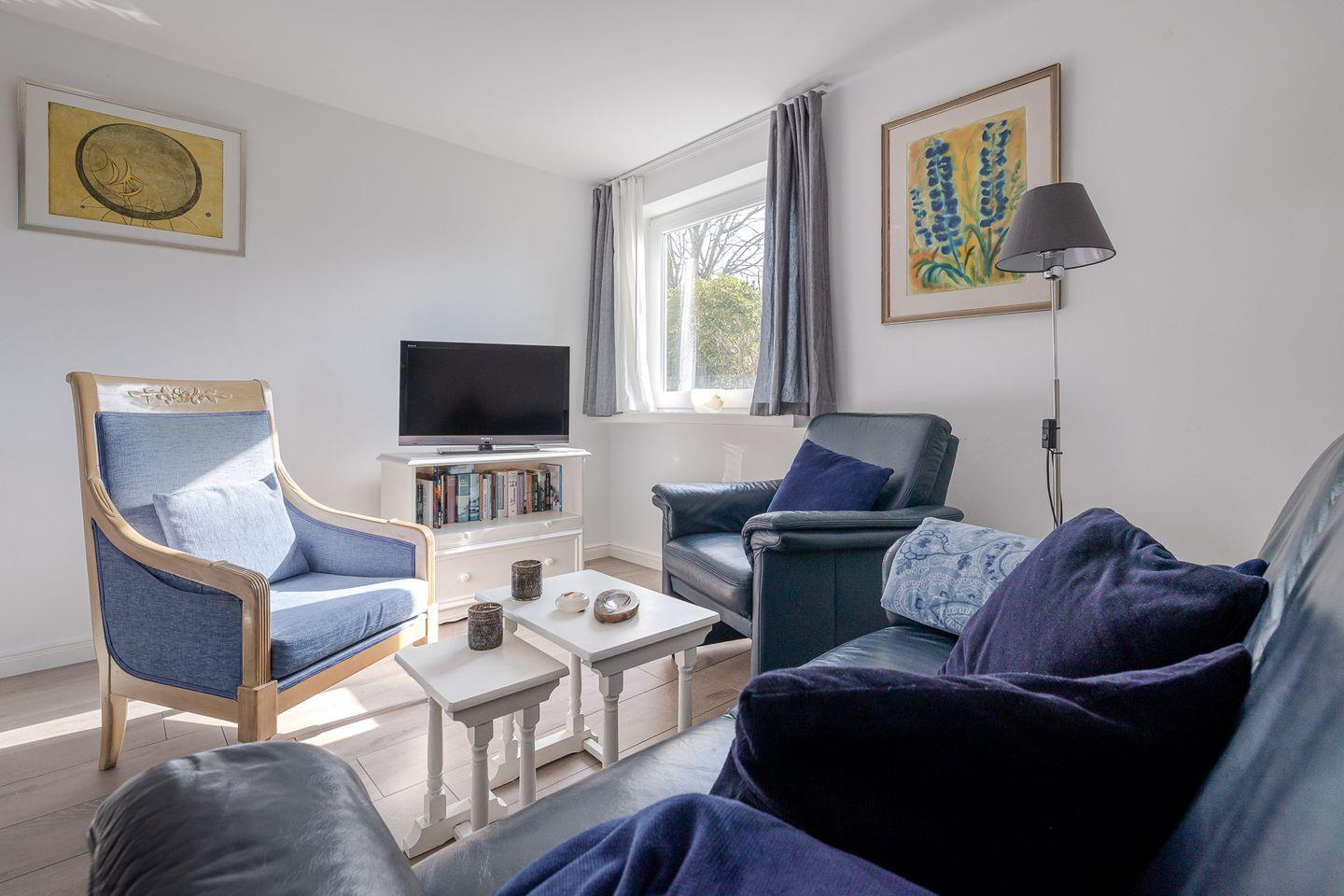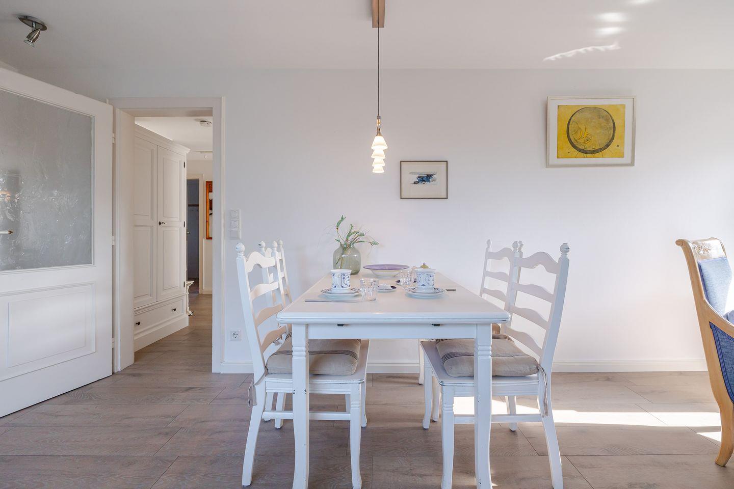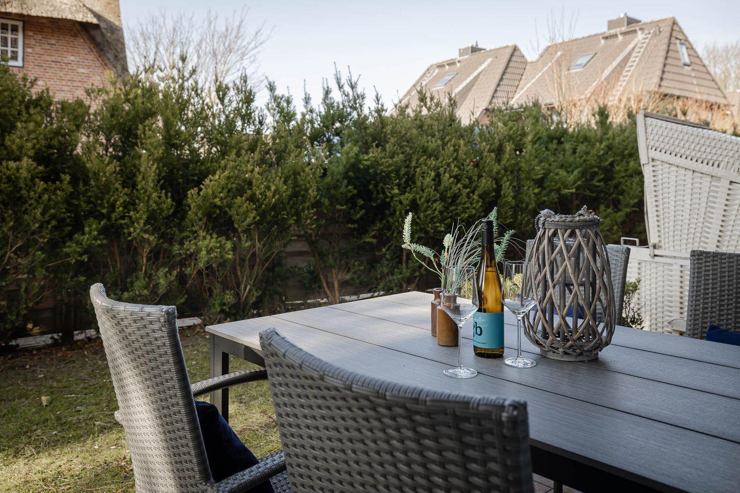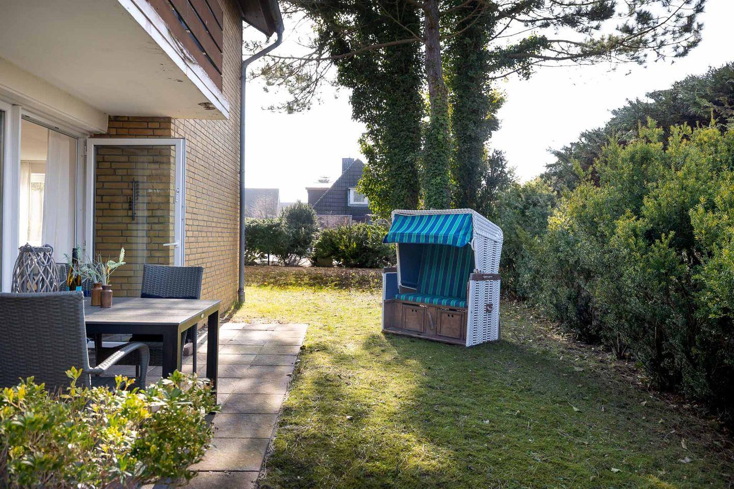 Modernes, helles Appartement "Meise" in Sylt, 500 m zum Strand, mit Terrasse und Gartenblick.