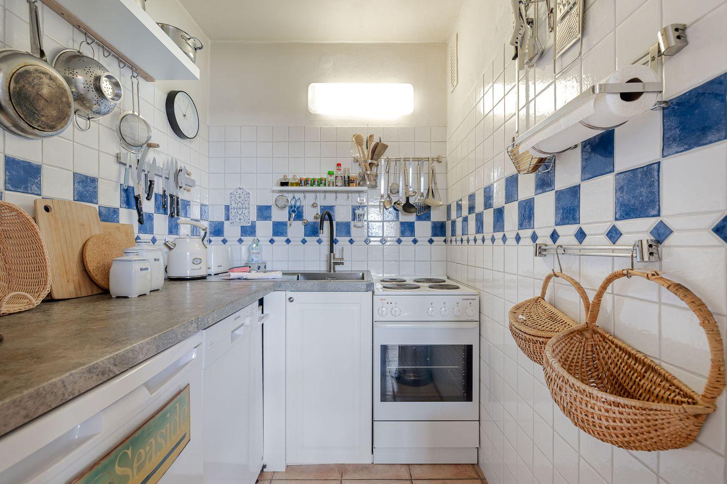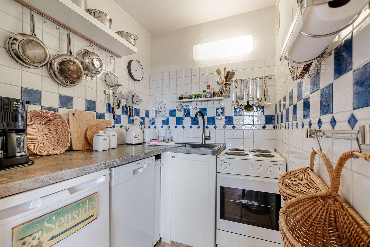Der Wohnbereich ist hell und freundlich gestaltet und bietet Raum für gemeinsame Mahlzeiten oder entspannte Abende. WLAN und TV stehen selbstverständlich zur Verfügung. Die Küche ist vollständig ausgestattet mit Herd, Backofen, Geschirrspüler und allem, was es für die Selbstversorgung im Urlaub braucht.