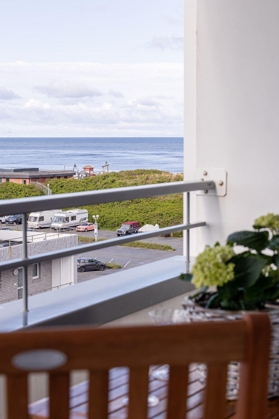 Helle Ferienwohnung mit Balkon und Meerblick in Westerland, nur 50 Meter vom Strand entfernt.