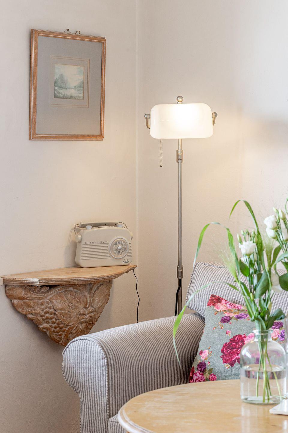 Auf rund 45 m² bietet die Wohnung Platz für bis zu vier Gäste. Die Aufteilung ist funktional und klar, mit zwei separaten Schlafzimmern, einem Wohnbereich mit Essplatz sowie einer gut ausgestatteten Küche. Die Einrichtung hat einen eigenen Charakter und wirkt bewusst individuell – getragen wird das Gesamtbild vor allem von der Lage und dem Ausblick.