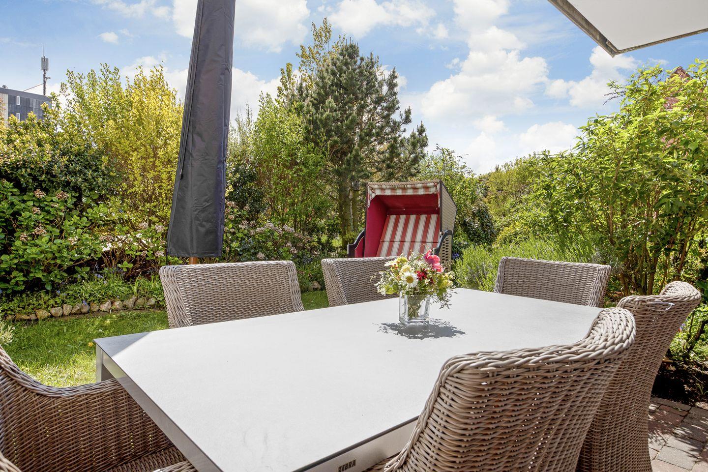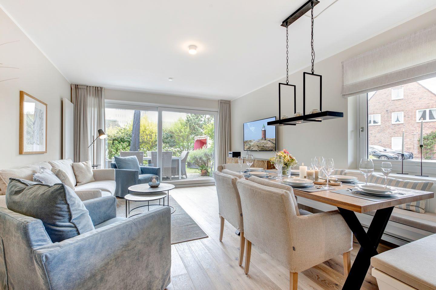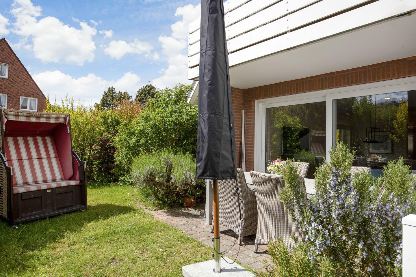 Genießen Sie das elegante Appartement Us Strän 1 in Westerland, nahe Strand und Stadt, mit gemütlicher Terrasse und hochwertiger Ausstattung.