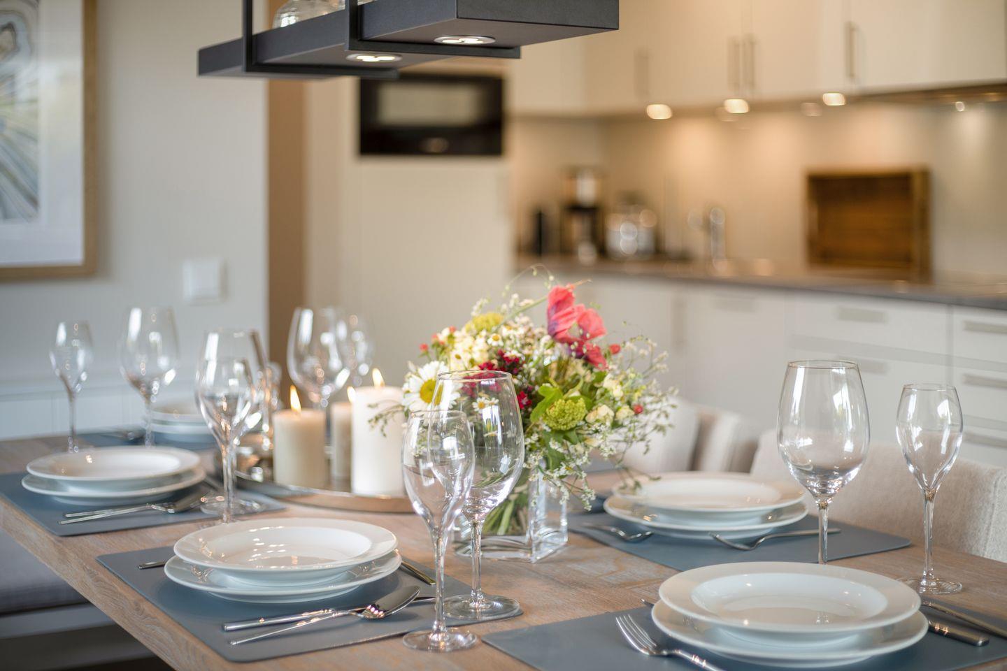 Kochen, essen, wohnen, Beisammensein: Im offenen Wohnbereich des Erdgeschoss' gehen verschiedene Lebenswelten fließend ineinander über und vereinen sich zu einem harmonischen Ganzen. Eine cosy Sitzecke, dazu der große Esstisch und die offene Küche, die für alle Küchenschlachten ausgestattet ist. Unverzichtbar bei schönem Wetter ist auch die kleine Gartenterrasse (Südlage), die zum draußen frühstücken und Sonnenbad im Strandkorb einlädt.
