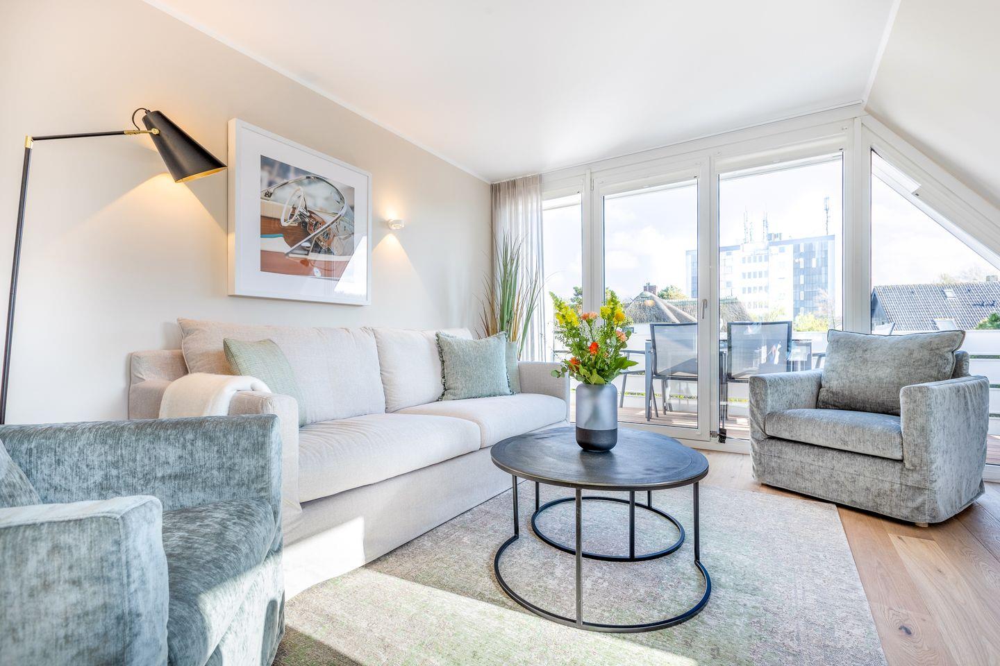 Modernes Appartement Us Strän 2 in Westerland, nur 500 m zum Strand, mit Balkon, WLAN und privatem Parkplatz.