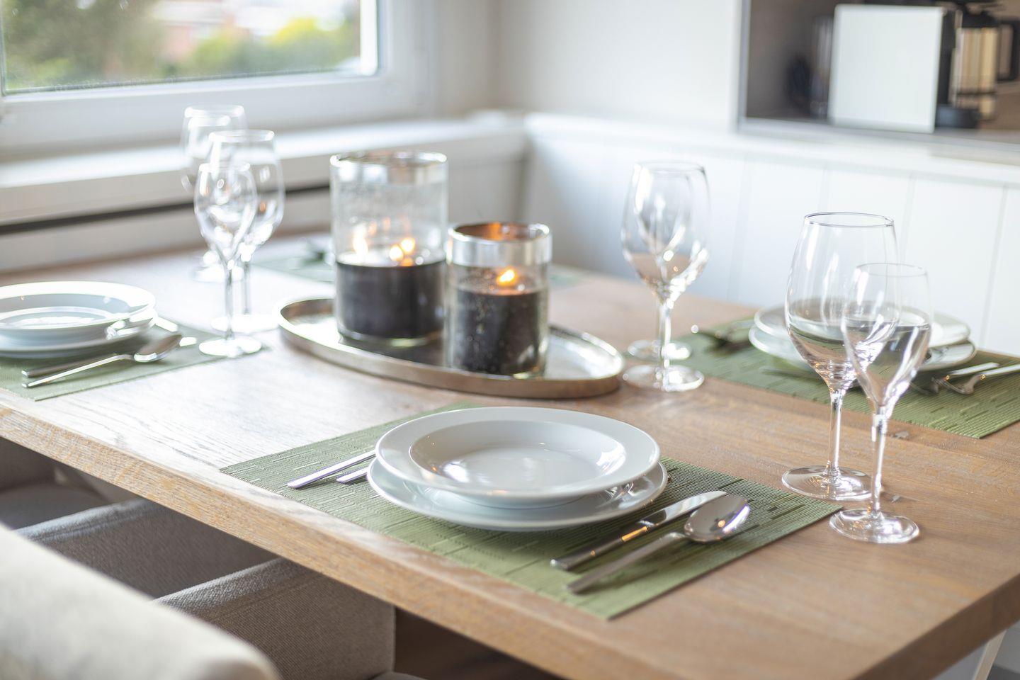 Kochen, essen, wohnen, Beisammensein: Im offenen Wohnbereich des ersten Obergeschoss gehen verschiedene Lebenswelten fließend ineinander über und vereinen sich zu einem harmonischen Ganzen. Eine cosy Sitzecke, dazu der große Esstisch und die offene Küche, die für alle Küchenschlachten ausgestattet ist. Unverzichtbar bei schönem Wetter ist auch der kleine Balkon (Südlage), die zum draußen frühstücken einlädt.