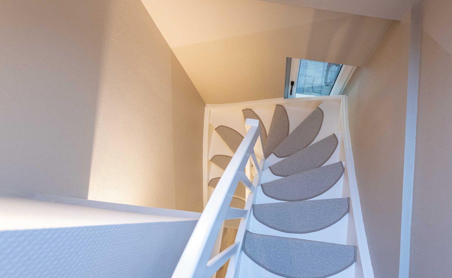 Über eine gut begehbare Treppe gelangen Sie in das Obergeschoss.