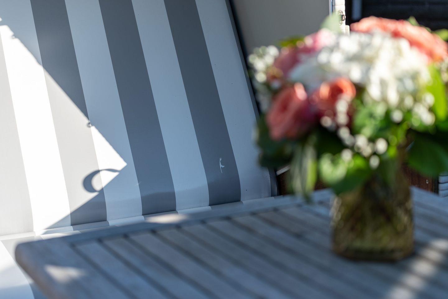 Helle 2-Zimmer-Ferienwohnung im Landhausstil mit West-Terrasse und Strandkorb in ruhiger Lage nahe Westerlands Zentrum.