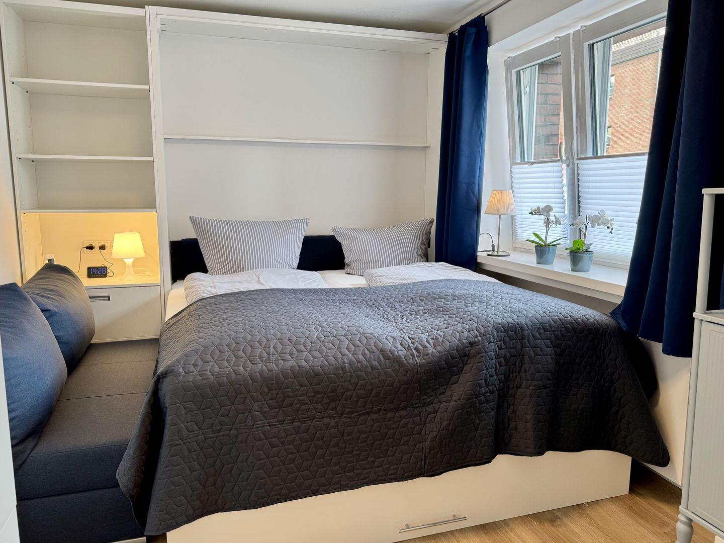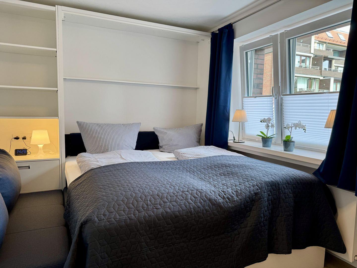 Die frisch renovierte 1-Zimmer Ferienwohnung "Robbe" für 1-2 Personen befindet sich in einer direkten Stadt- und Strandlage von Westerland (Hochparterre). Der helle Wohn- und Schlafbereich lädt zum gemeinsamen Verweilen ein. Angrenzend befindet sich eine kleine Küche samt Cerankochfeld und Geschirrspüler, die sehr gut ausgestattet ist. Im Badezimmer finden Sie eine Dusche sowie einen Haartrockner. Kostenloses WLAN steht Ihnen zur Verfügung. Haustiere sind nicht erlaubt. Das Bett kann nicht hochgeklappt werden.