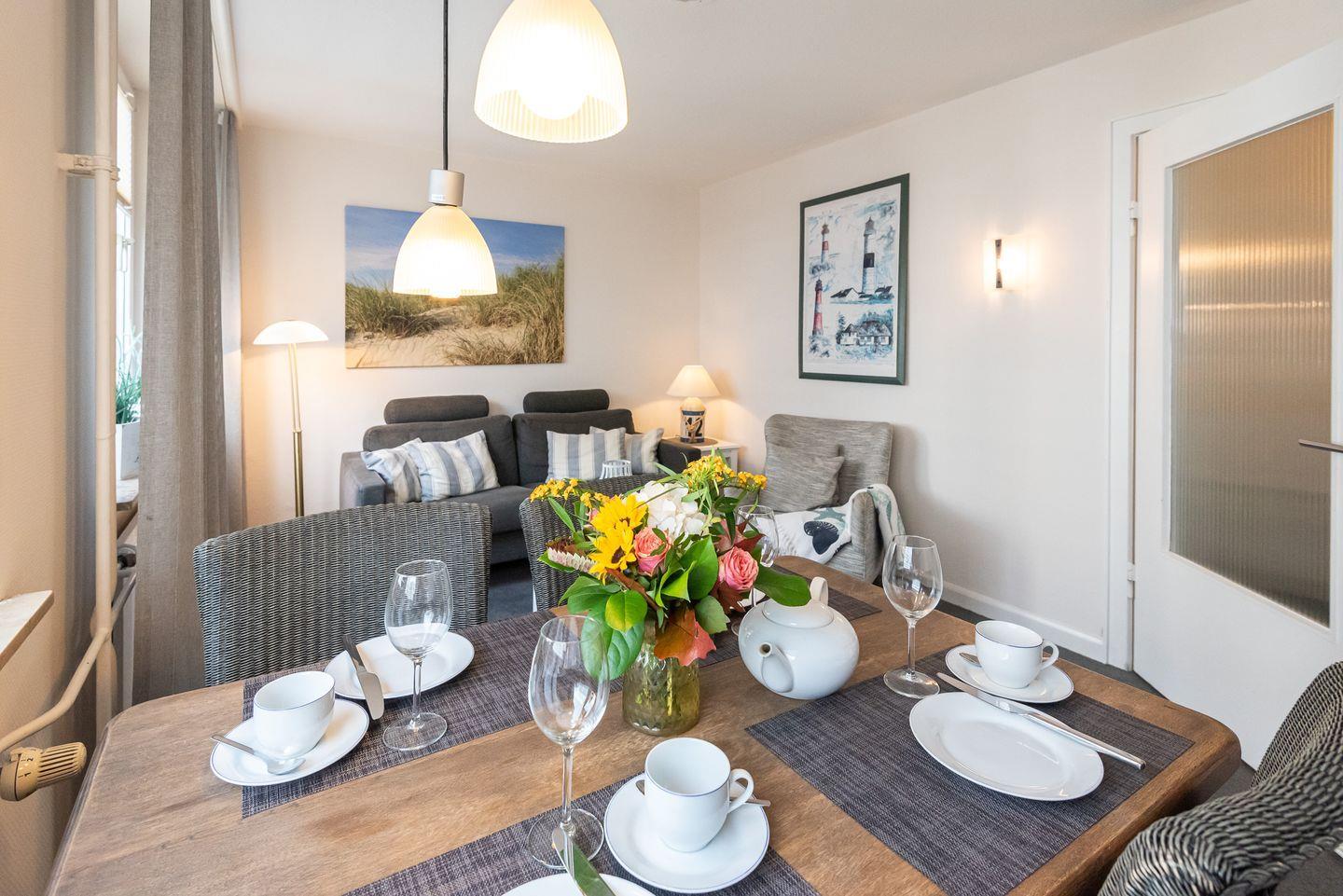 Gemütliche 3-Zimmer-Ferienwohnung mit kleinem Meerblick in Westerland, ideal für entspannte Urlaubstage in maritimer Atmosphäre.