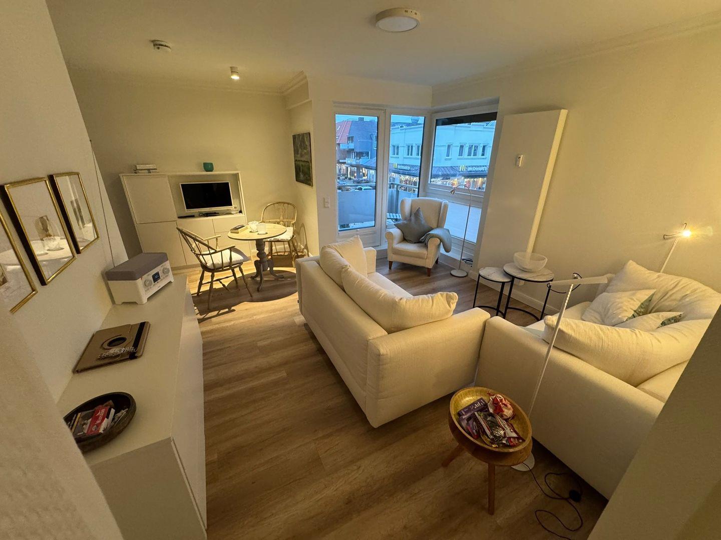 Utkiek ? zentrales, ca. 40 m² großes, modern eingerichtetes App. für 2 bis 3 Personen in idealer Lage zwischen Strand und Stadtzentrum. Genießen Sie entspannte Urlaubstage mit allem Komfort: Das App. verfügt über einen gemütlichen Balkon mit Blick auf die Friedrich- und Elisabethstraße, kostenfreies WLAN, einen PKW-Tiefgaragenstellplatz sowie einen Fahrstuhl im Haus.