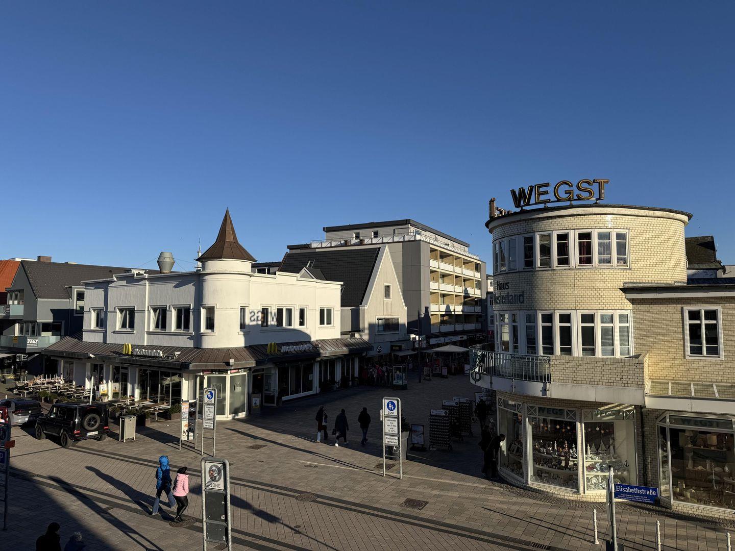Utkiek ? zentrales, ca. 40 m² großes, modern eingerichtetes App. für 2 Personen in idealer Lage zwischen Strand und Stadtzentrum. Genießen Sie entspannte Urlaubstage mit allem Komfort: Das App. verfügt über einen gemütlichen Balkon mit Blick auf die Friedrich- und Elisabethstraße, kostenfreies WLAN, einen PKW-Tiefgaragenstellplatz sowie einen Fahrstuhl im Haus.