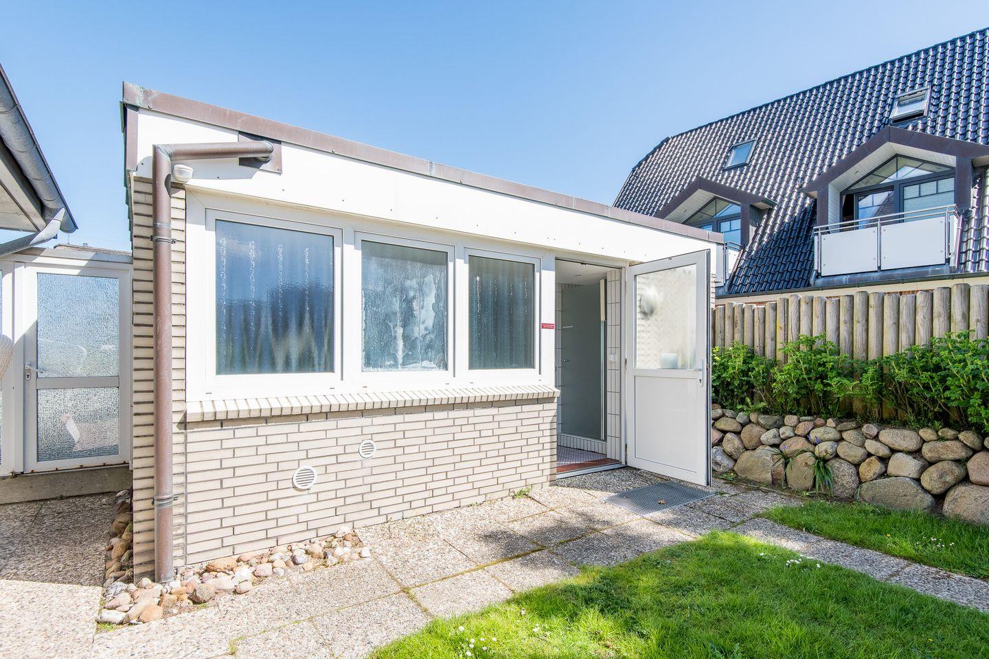 Moderne, kernsanierte Ferienwohnung im Erdgeschoss, strandnah in Westerland mit Terrasse und beheiztem Hallenschwimmbad.