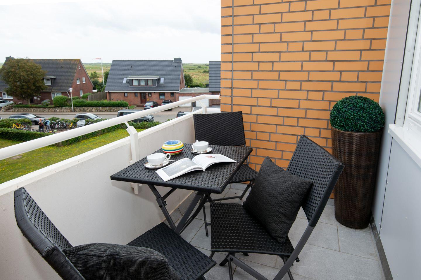 Modernes Luxus-Apartment mit Balkon und Gartenblick in Westerland für entspannte Ferien.